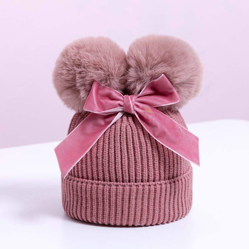 Luxury Modern Elegant New Girls Double Pompom Knitted Hat Warm Thicker Beanie Cap for Baby Girls In Winter elegant New Year Design