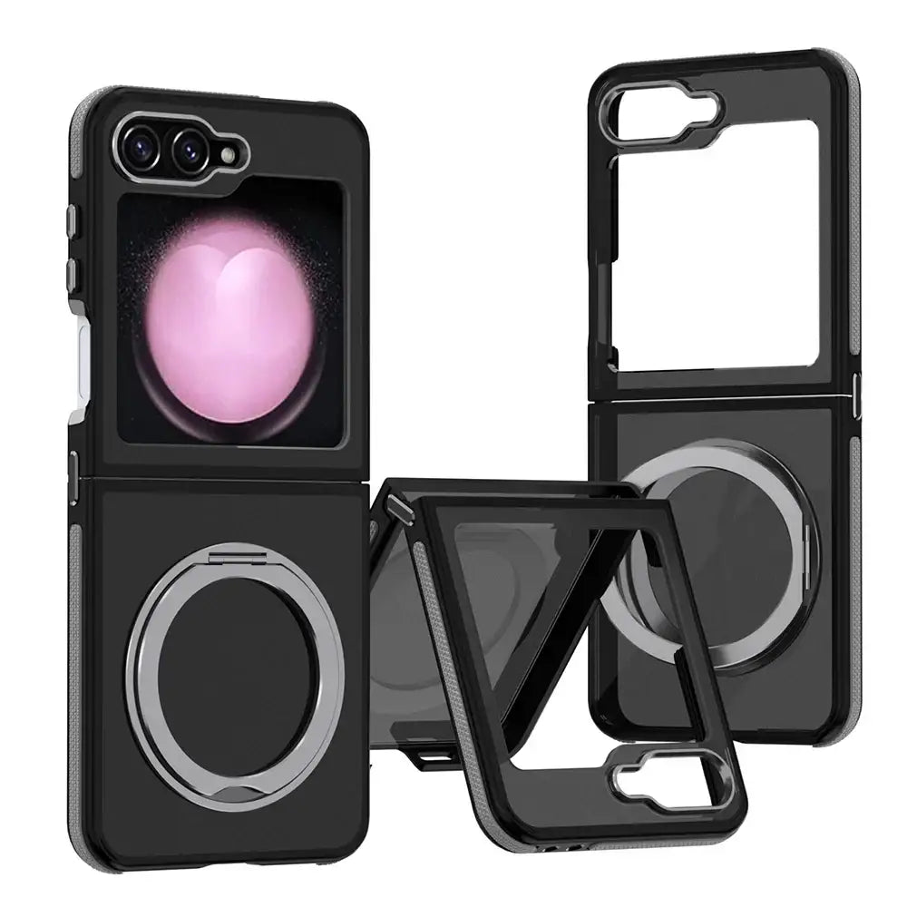 Magnetic Case for Samsung Galaxy Z Flip 6 5 5G Cover 360 Rotation Stand for Magsafe Matte Metal Camera Frame Folding Phone Shell