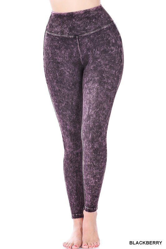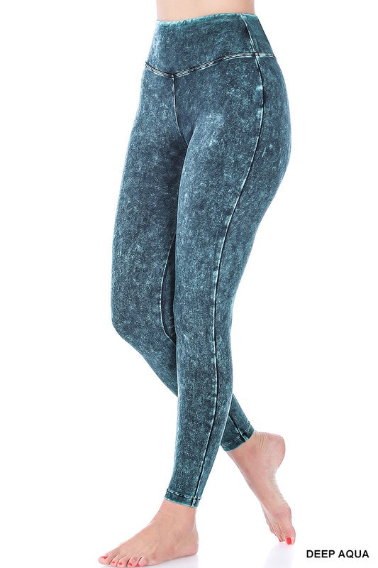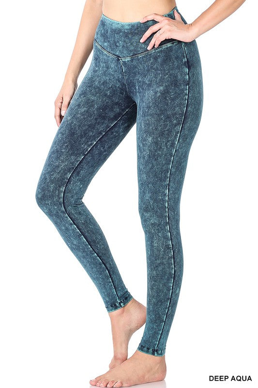 The Mineral Washed Wide Waistband Yoga Leggings are a must-have for anyone seeking both style and functionality in their activewear. These leggings feature a unique mineral-washed design that sets them apart with their trendy, lived-in look. The wide waistband not only adds a touch of style but also provides excellent support during your yoga sessions or any physical activity. The high-quality fabric ensures comfort and durability, so you can move freely and confidently.