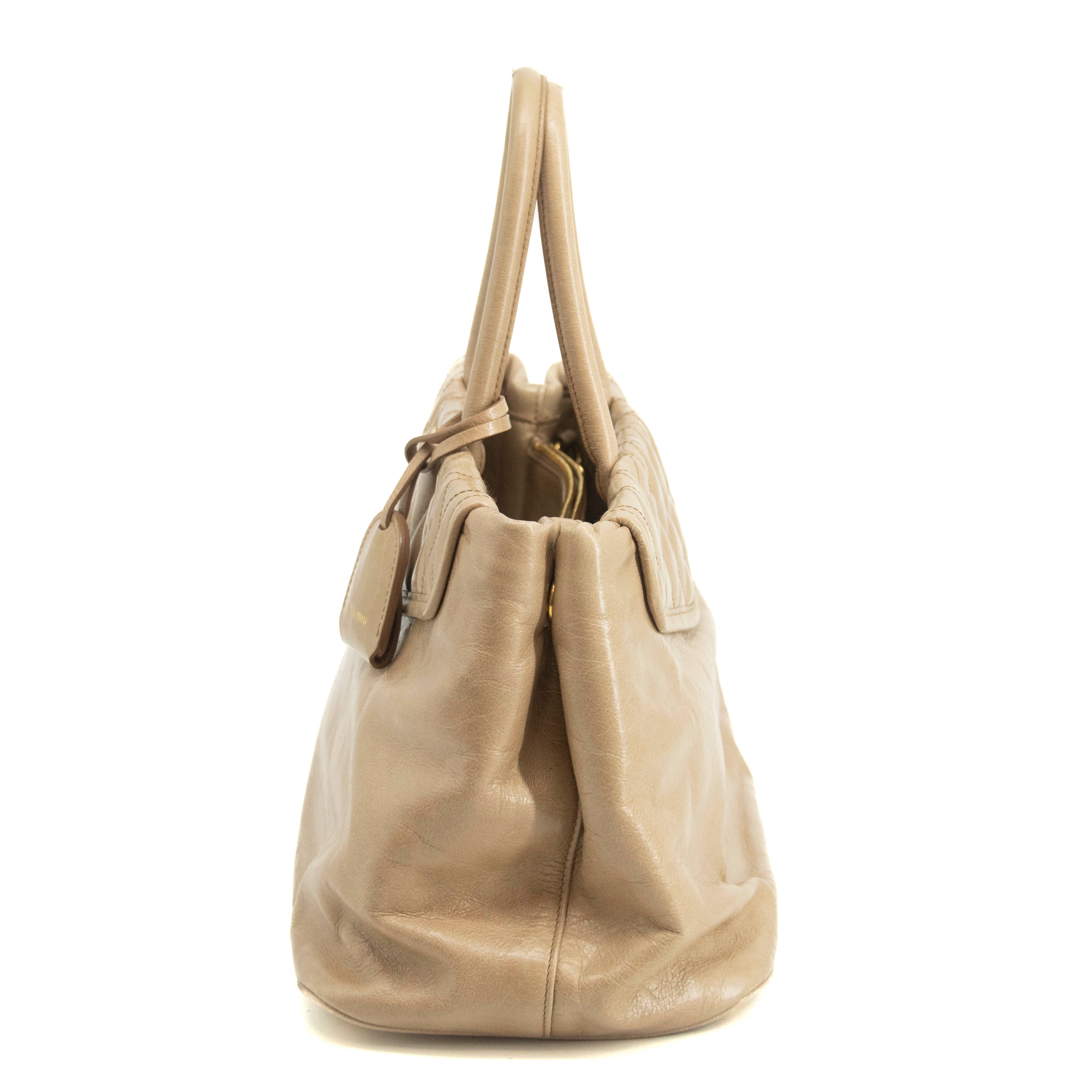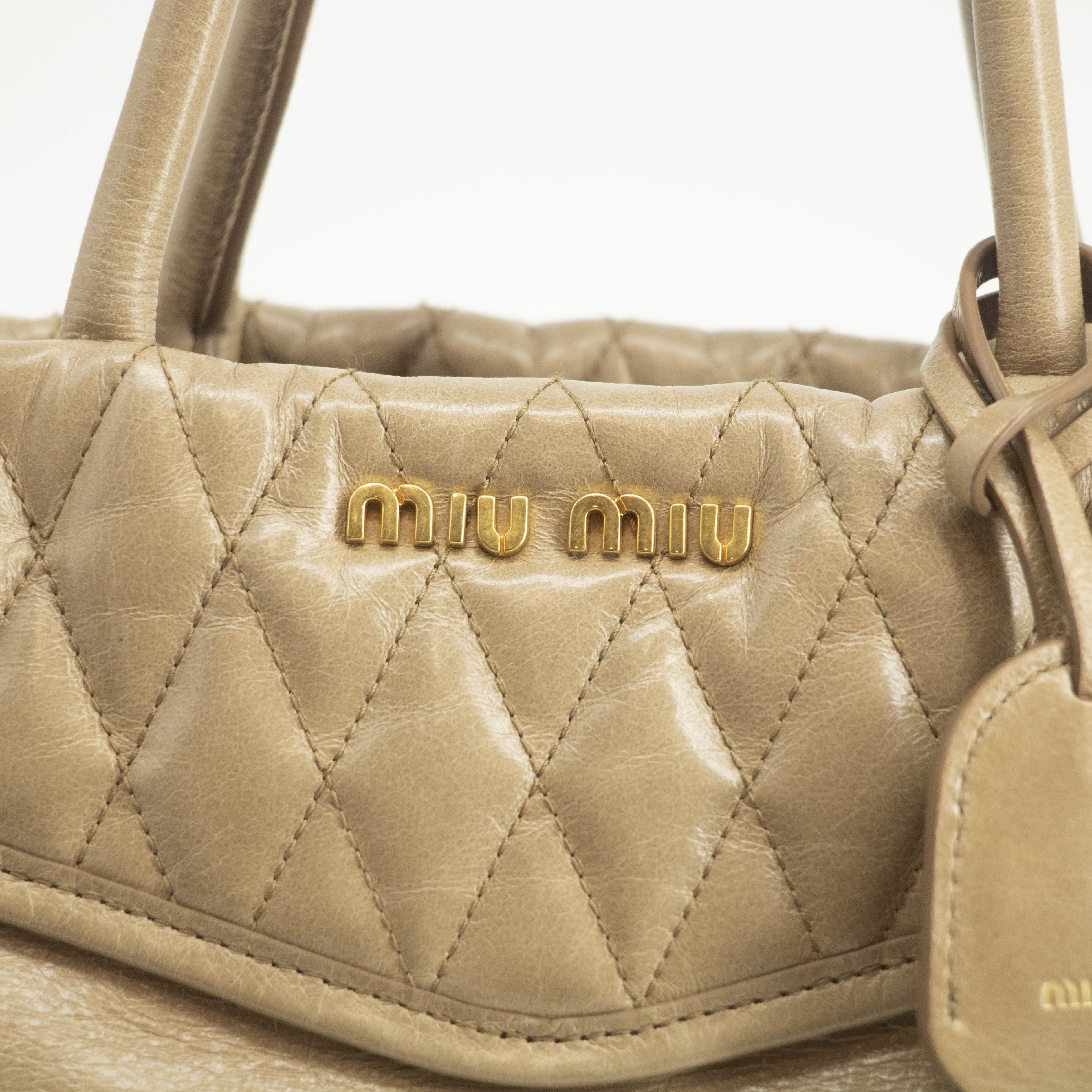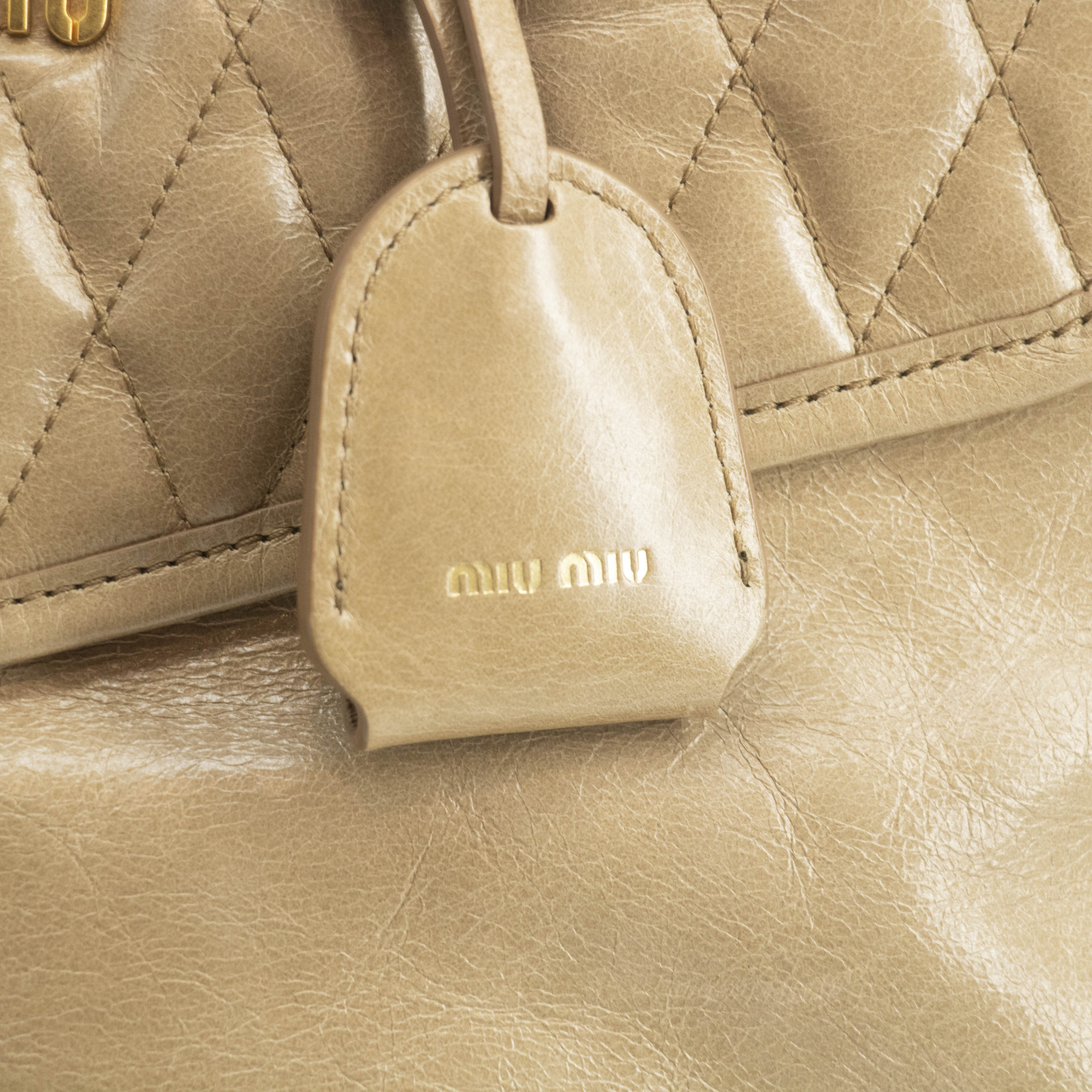 • Miu Miu Beige Quilted Glossy Leather 2Way Shoulder Bag -SKU #3967