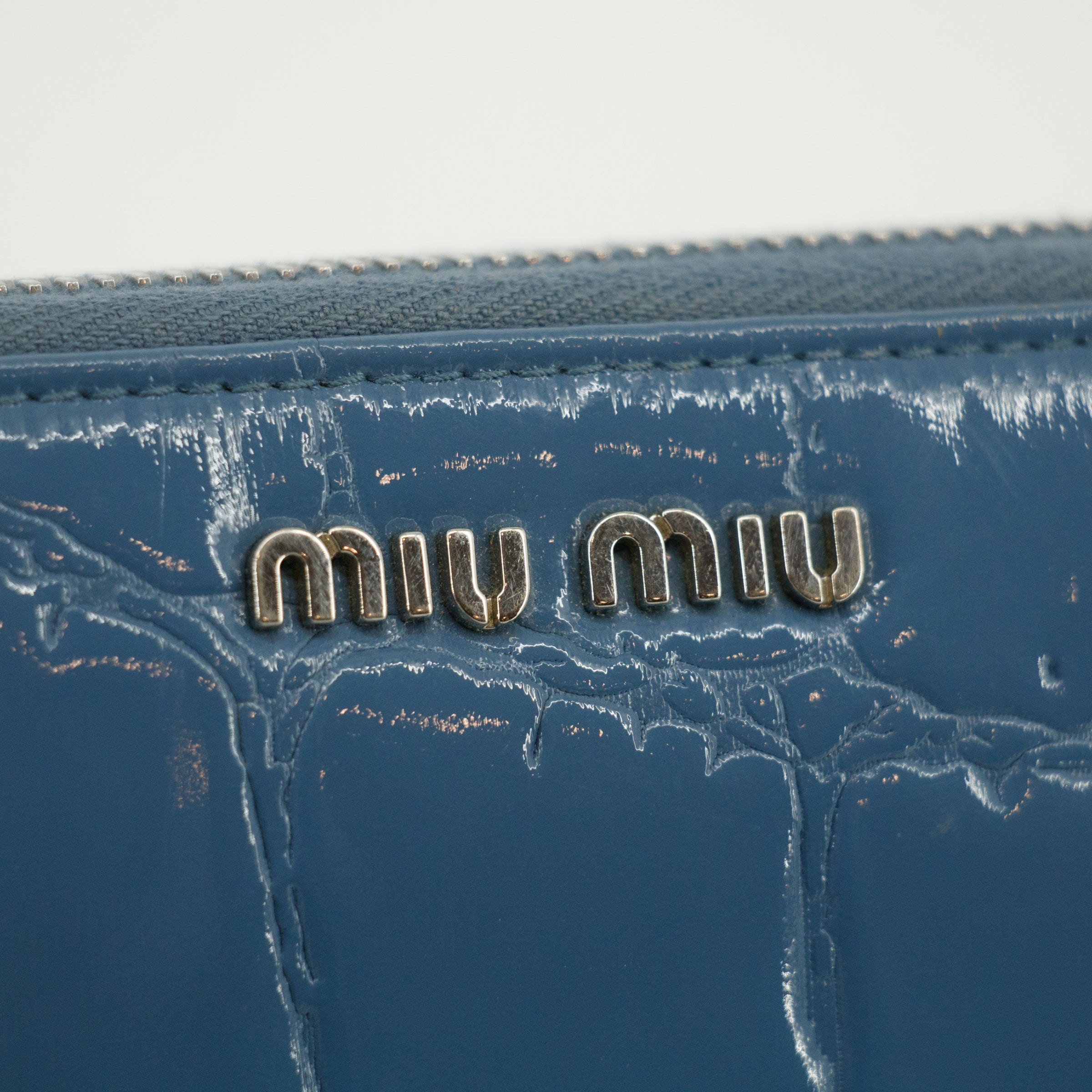 Miu Miu Blue Croco Embossed Leather Zip Around Wallet #3728
