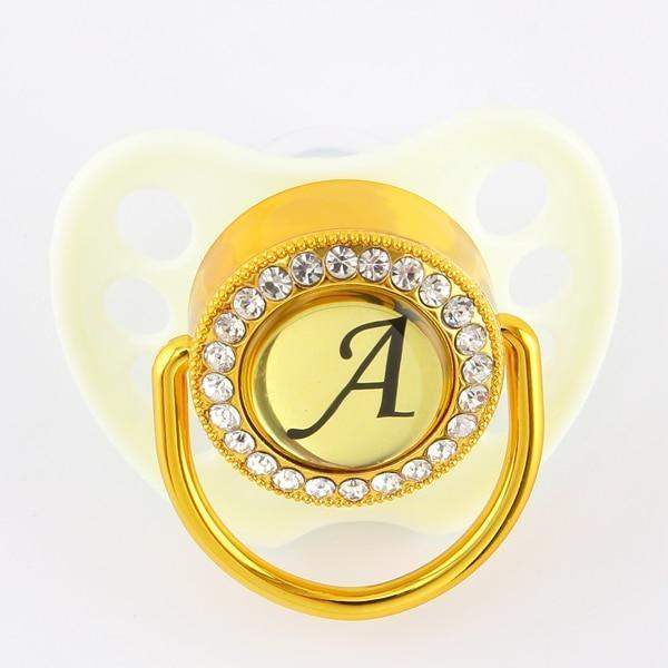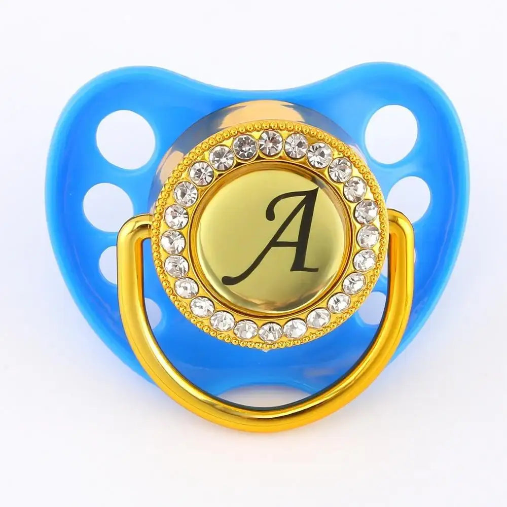 Modern Luxury Diamond Initials Letter Rhinestone Black Baby Pacifier/ Nipple For Baby Boys and Baby Girls Kids