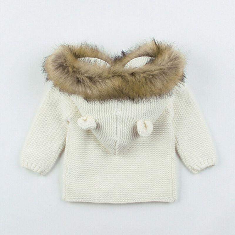 Modern Luxury Winter Warm Newborn Baby Boy Girl Knit Hooded Coat Fur Collar Jacket Clothes FOr Boys and Girls