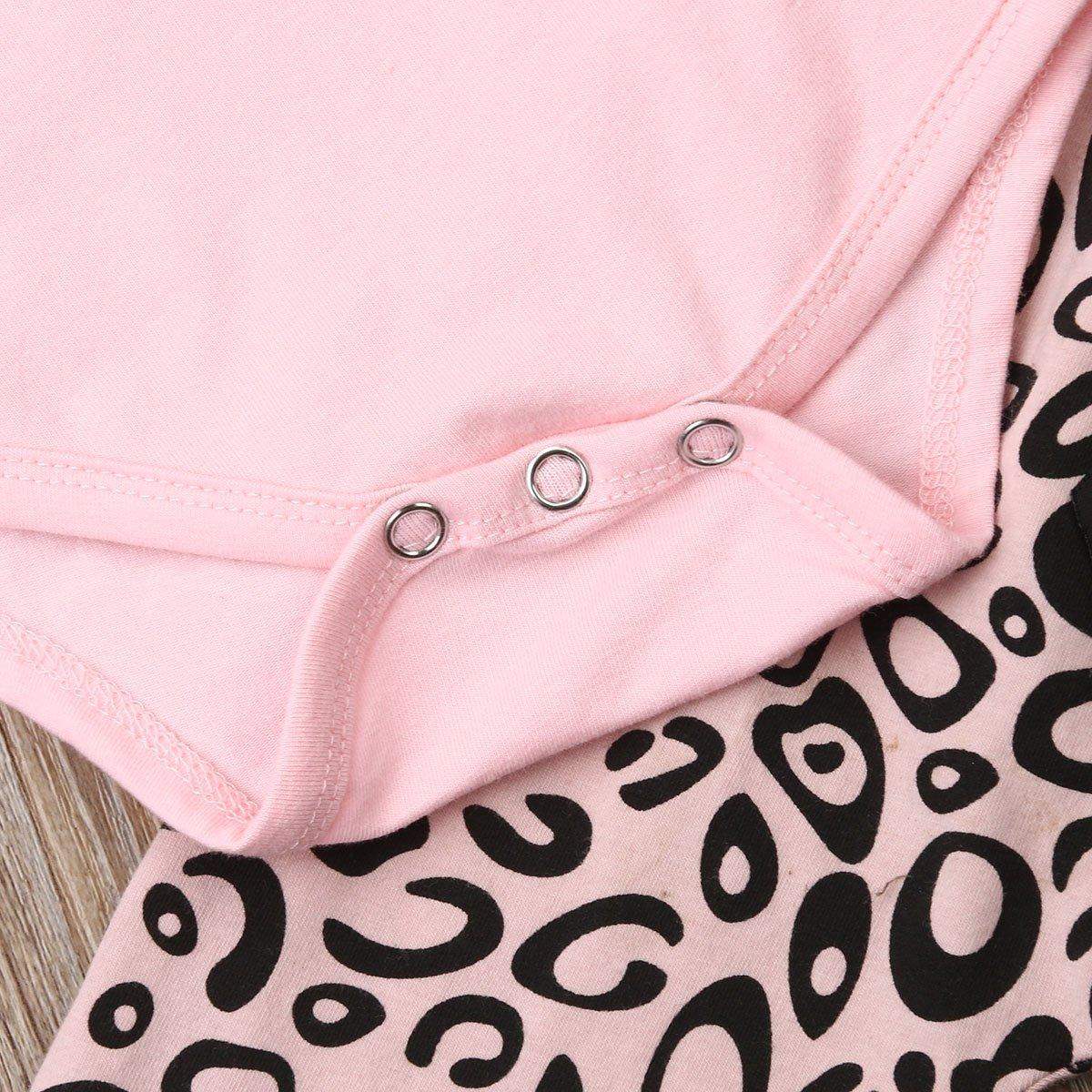 Newborn Baby Girl Clothes Fly Sleeve Knitting Cotton Romper Tops Leopard Print Long Pants Headband 3Pcs Outfits Clothes