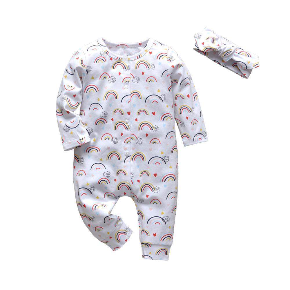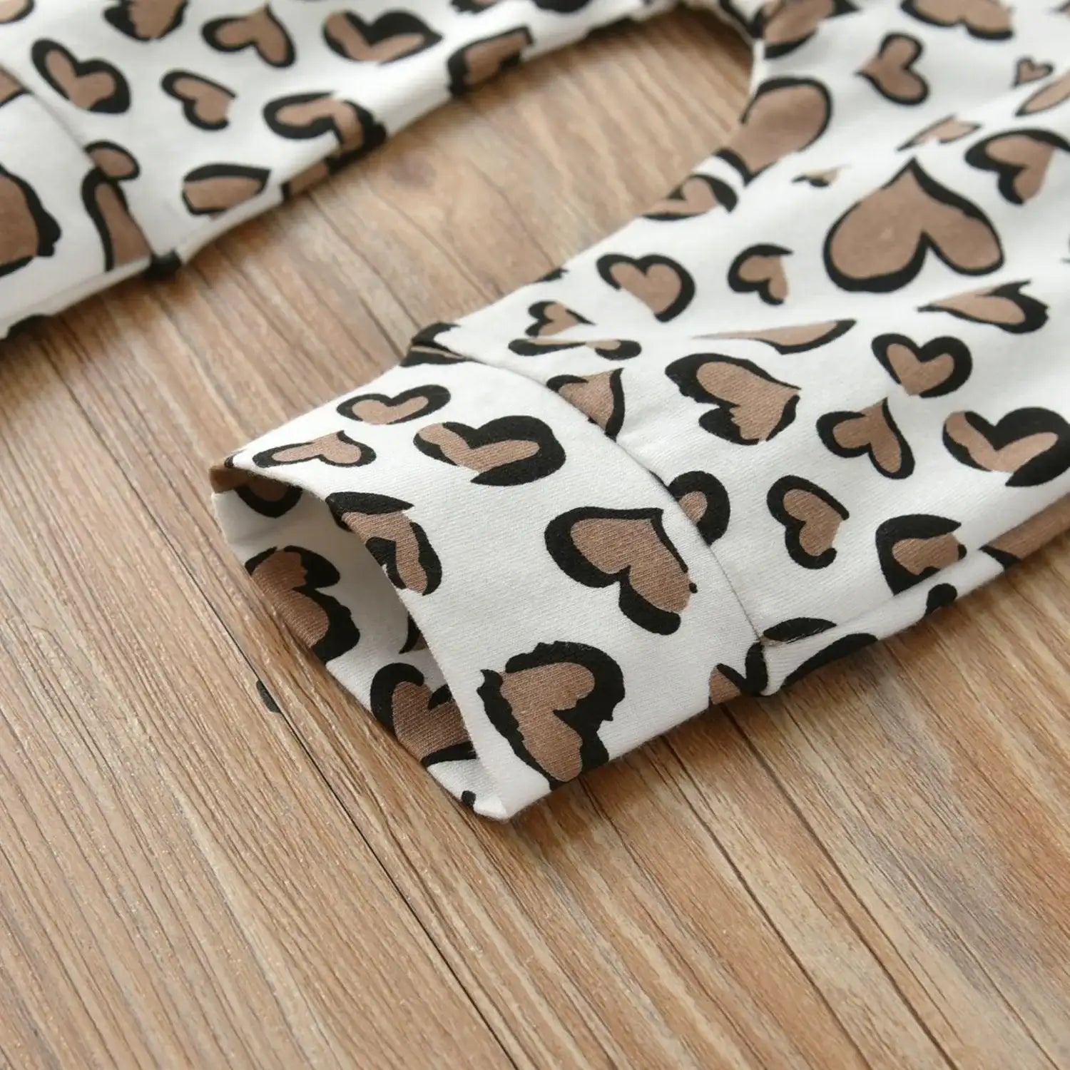 Newborn Clothes Baby Girls Romper Hearts Print Cotton Long Sleeve Jumpsuit and Headband Set
