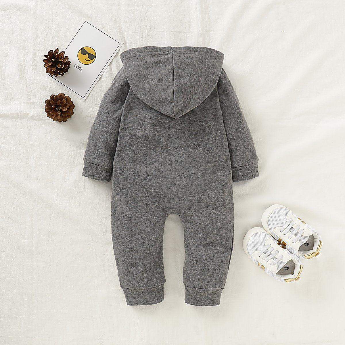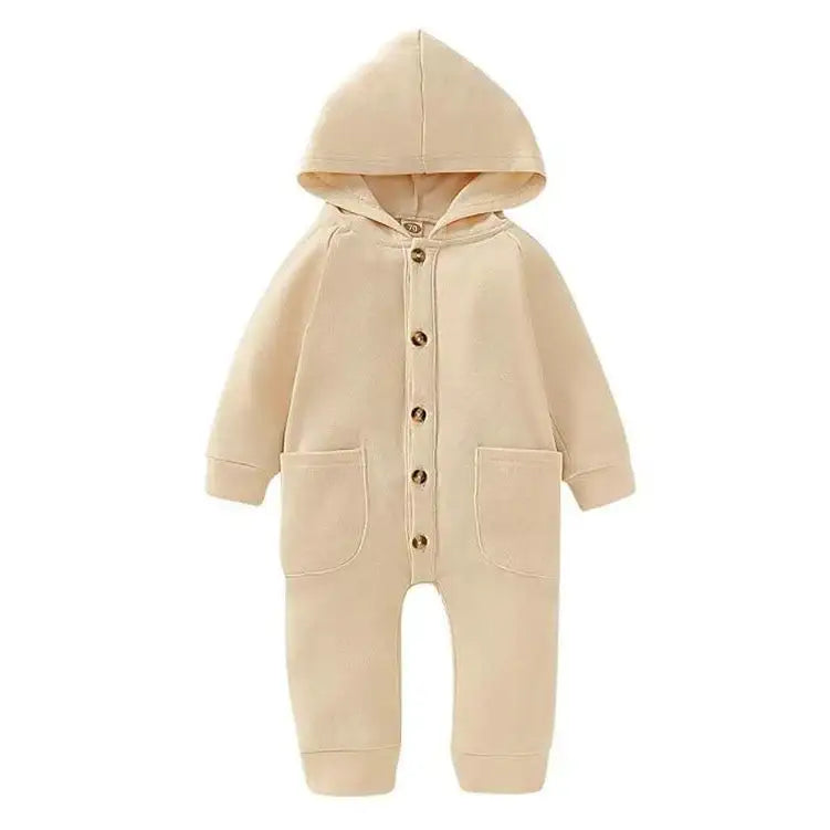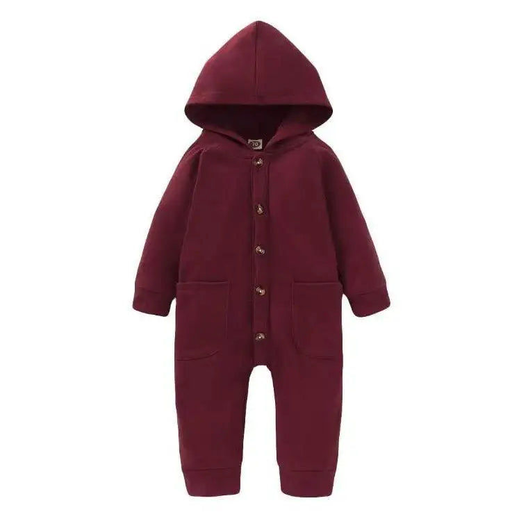 Newborn Clothing Solid Long Sleeve Hooded Button Pockets Romper Winter Warm Jumpsuit for Girls and Boys