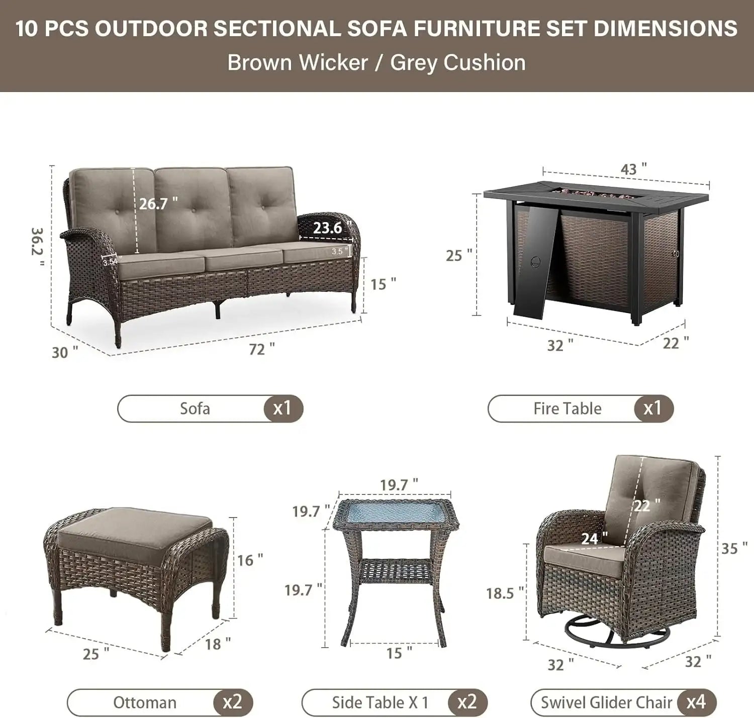 Turn chilly evenings into unforgettable gatherings with the Expansive 10-Piece Outdoor Patio Furniture Set, centered on a 43-inch propane fire pit table. This complete ensemble blends luxurious comfort with modern style, built to withstand the elements and adapt to any outdoor space.