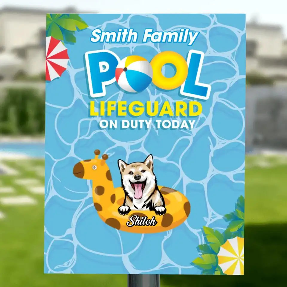 Personalized Pool Dog Vertical Metal Sign - Gift Idea For Dog Lovers - Up To 5 Dogs - Pool Lifeguard On Duty Today