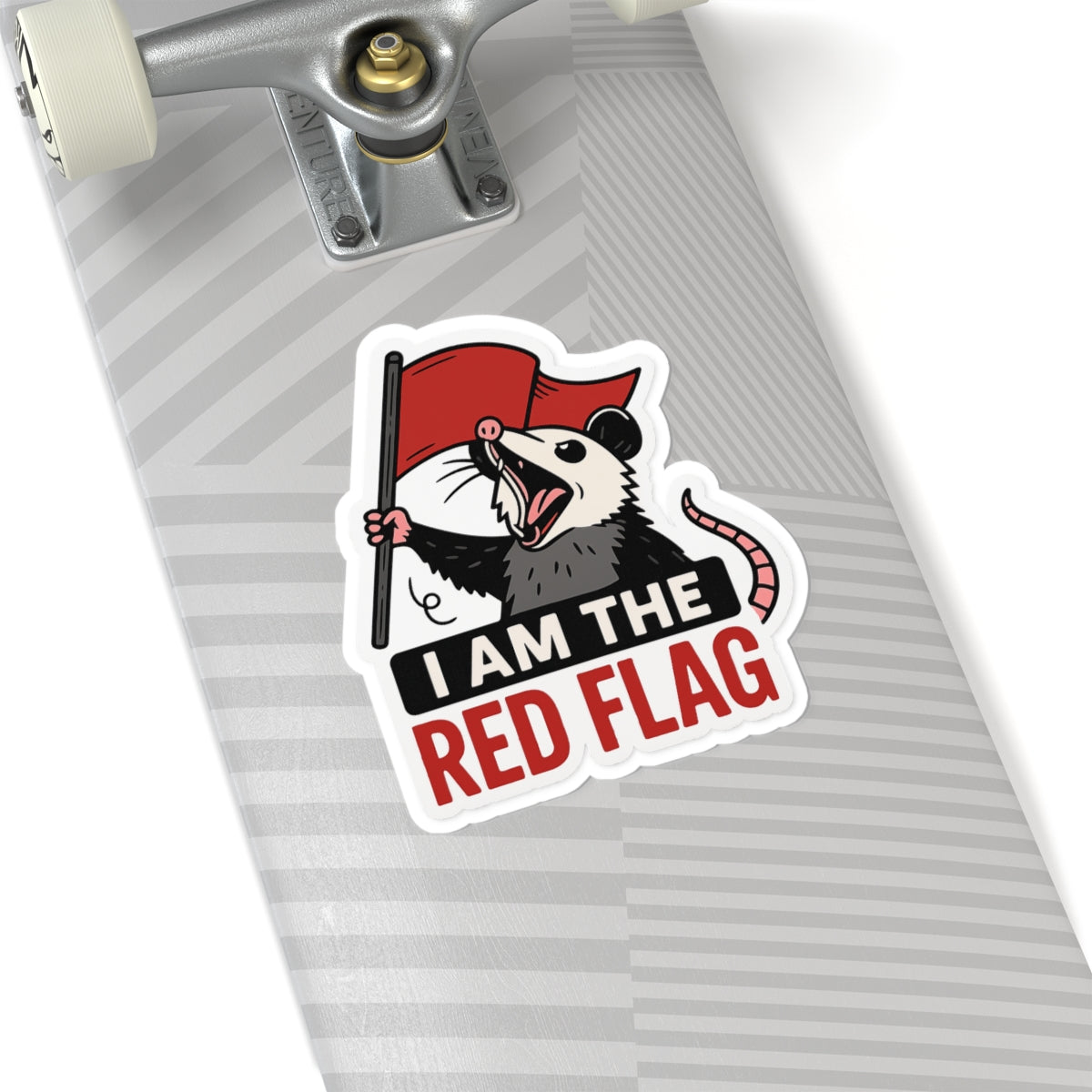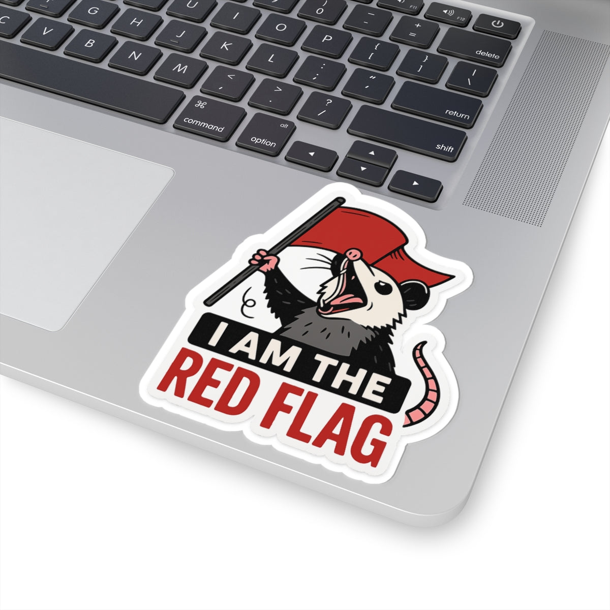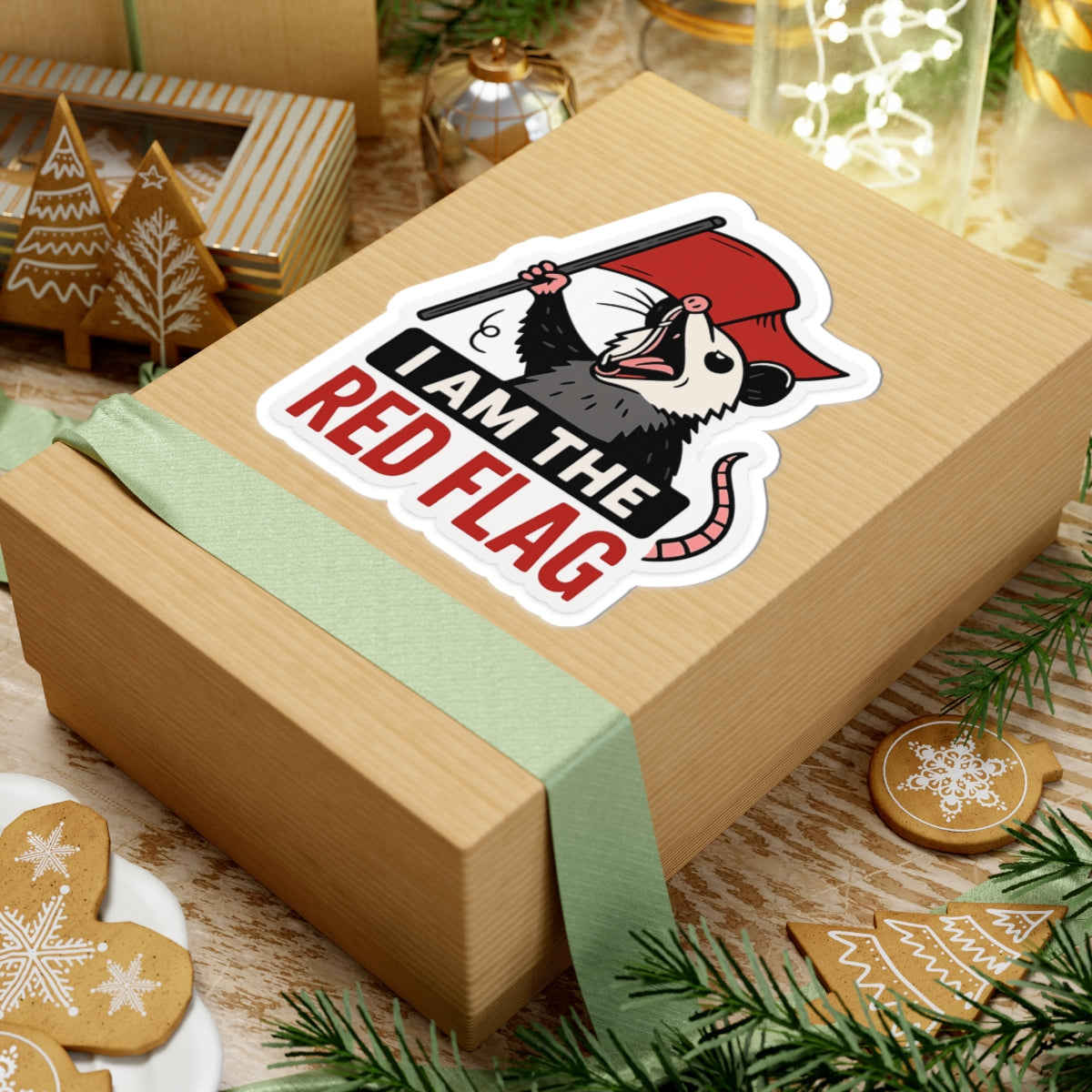 Playful Red Flag Opossum Sticker - Cute Decal for Laptops, Water Bottles, Journals, Gift for Friends, Funny Humor Art