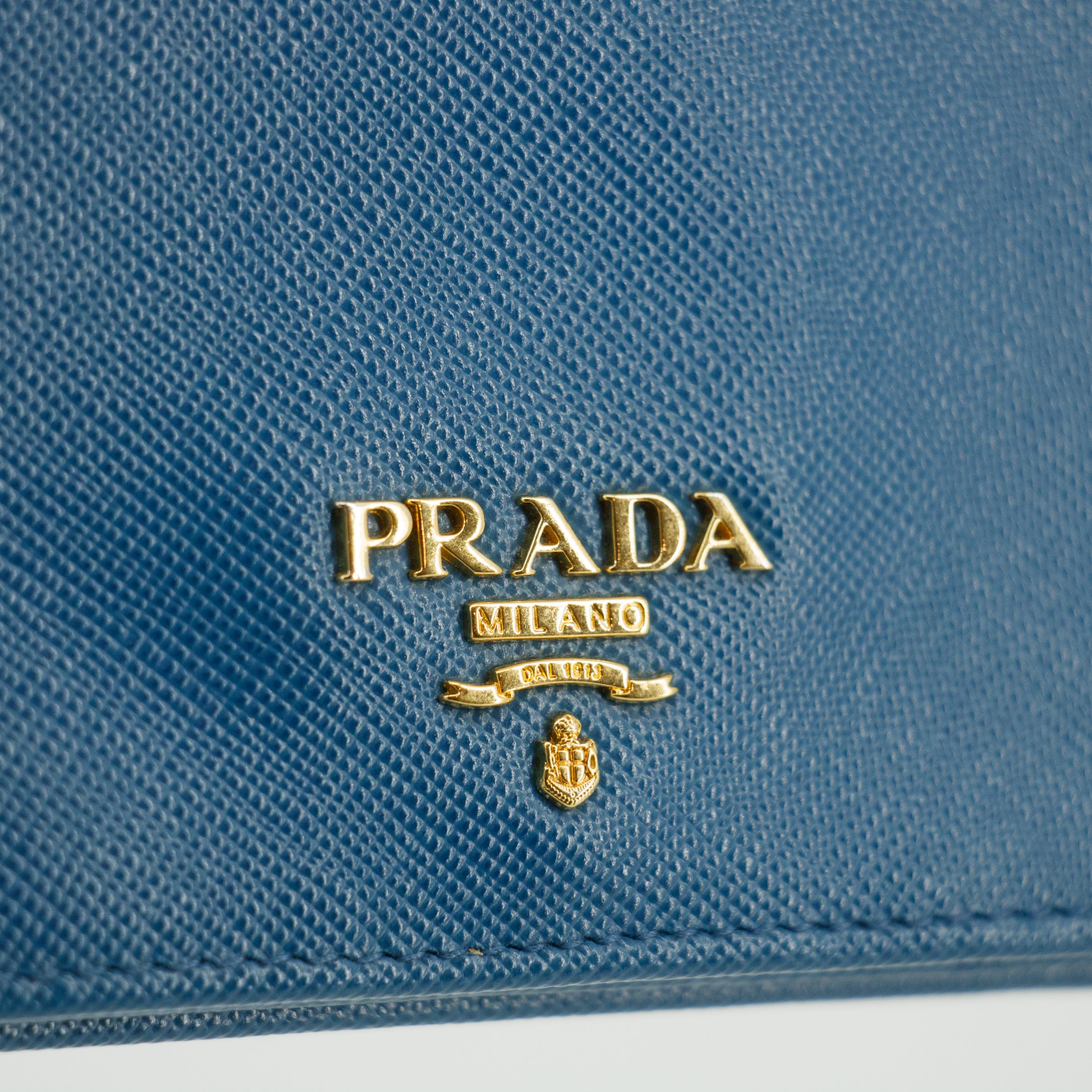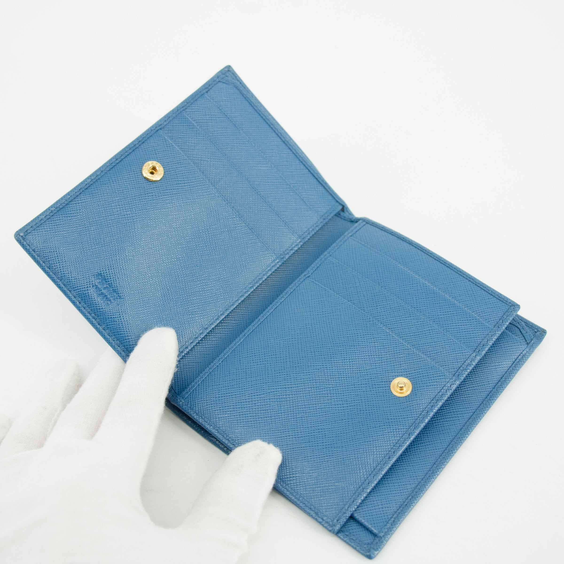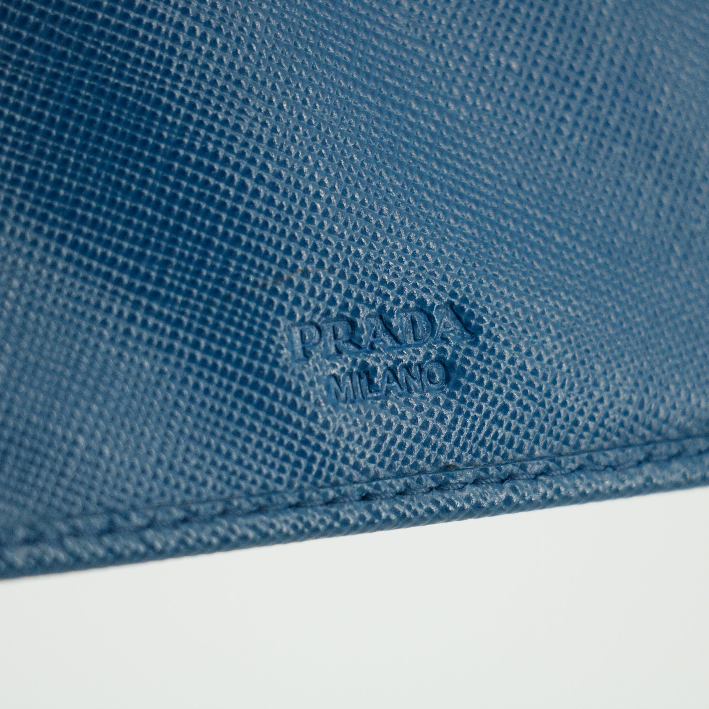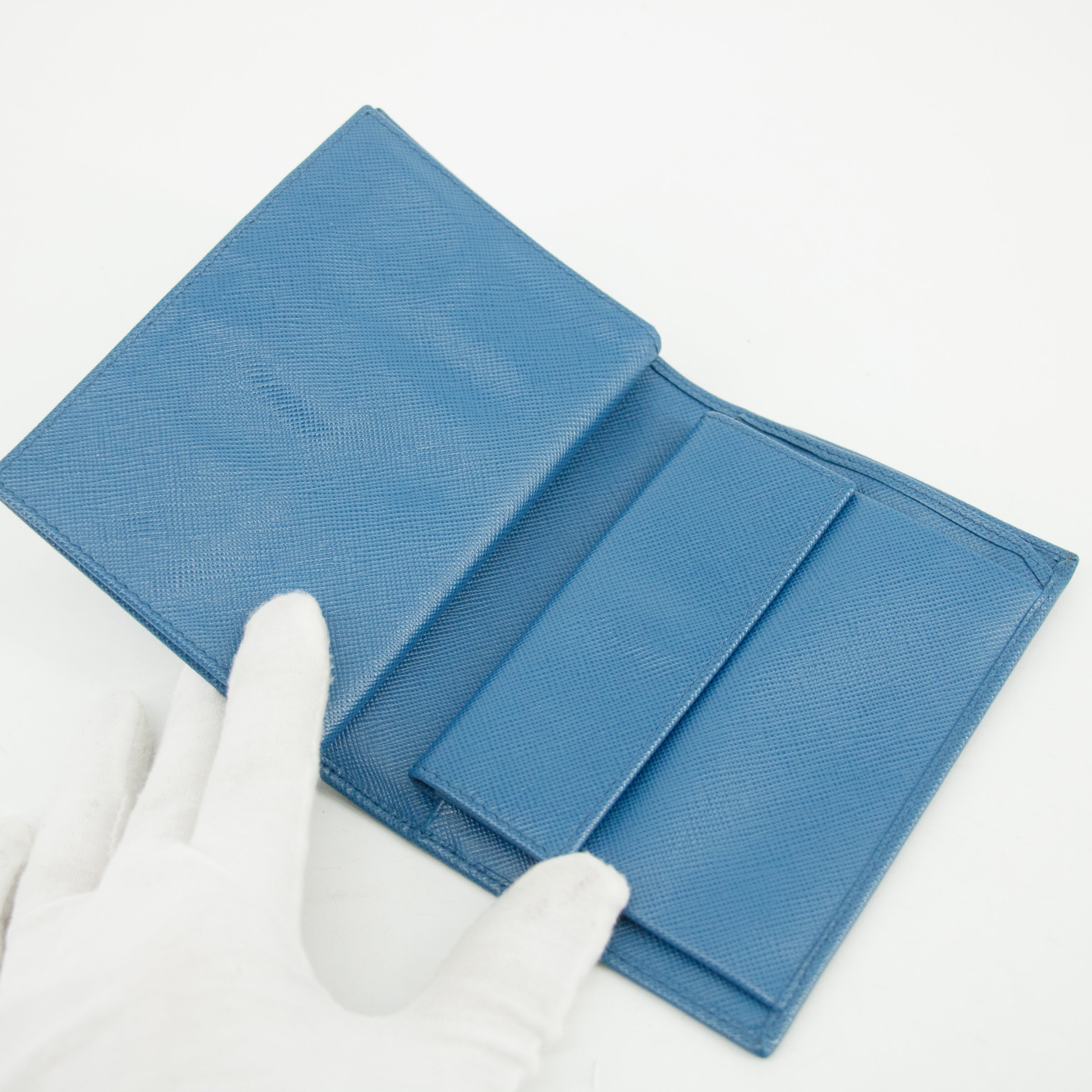 • Prada Blue Saffiano Lux Leather Trifold Wallet -SKU #3143