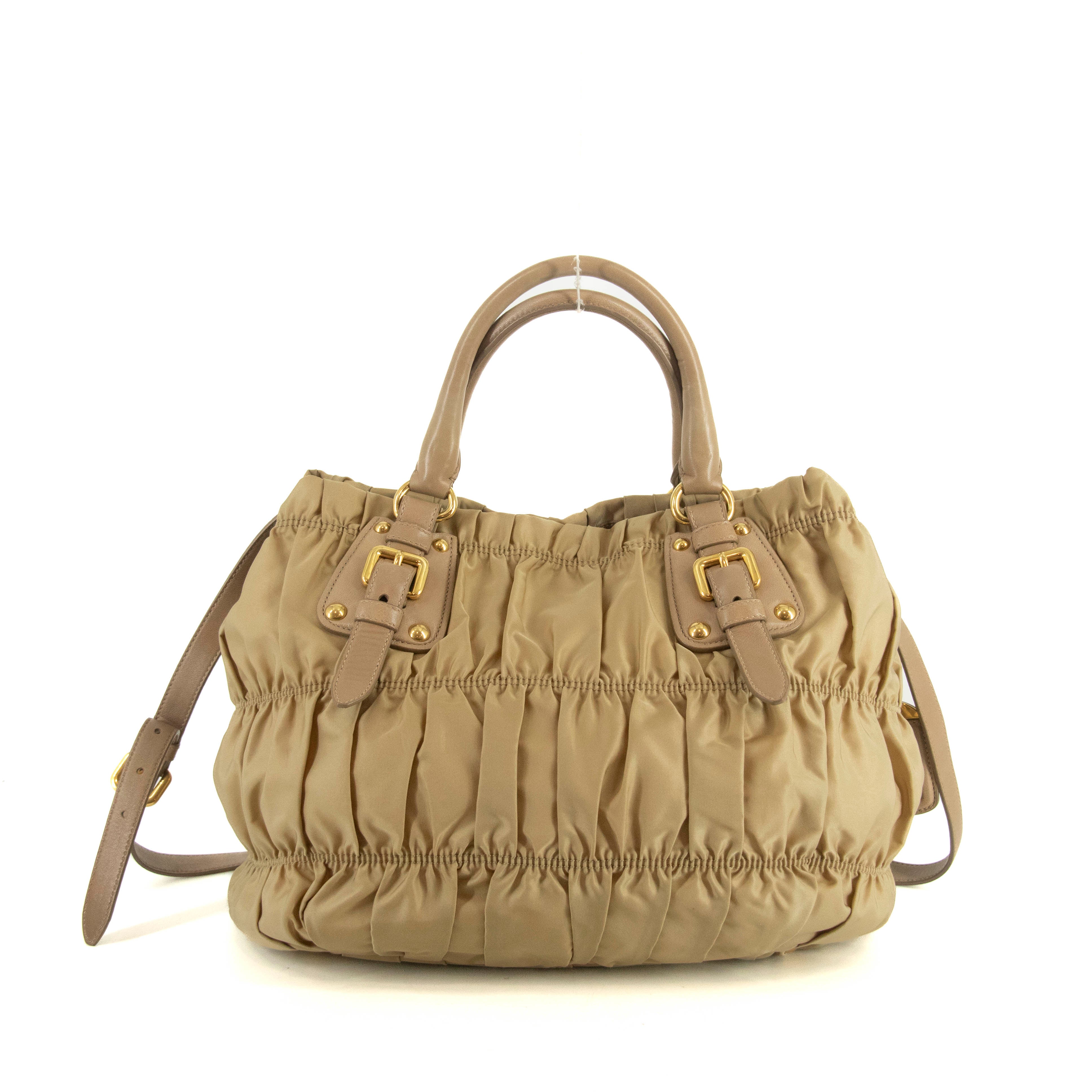 • Prada Nylon Tessuto Beige Gaufre 2Way Shoulder Bag Beige -SKU #4674