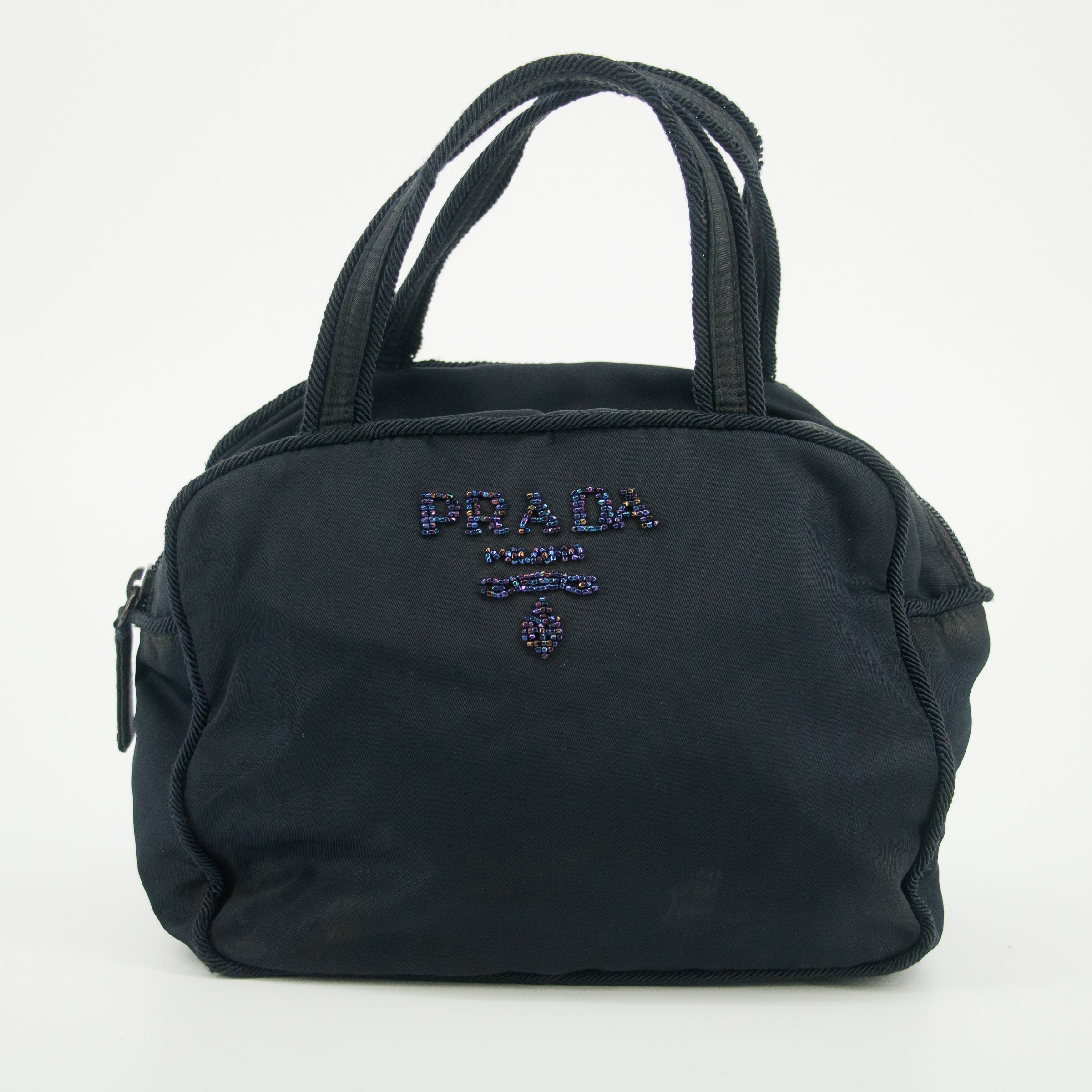 Prada Nylon Tessuto Black Beaded Handle Bag #5807