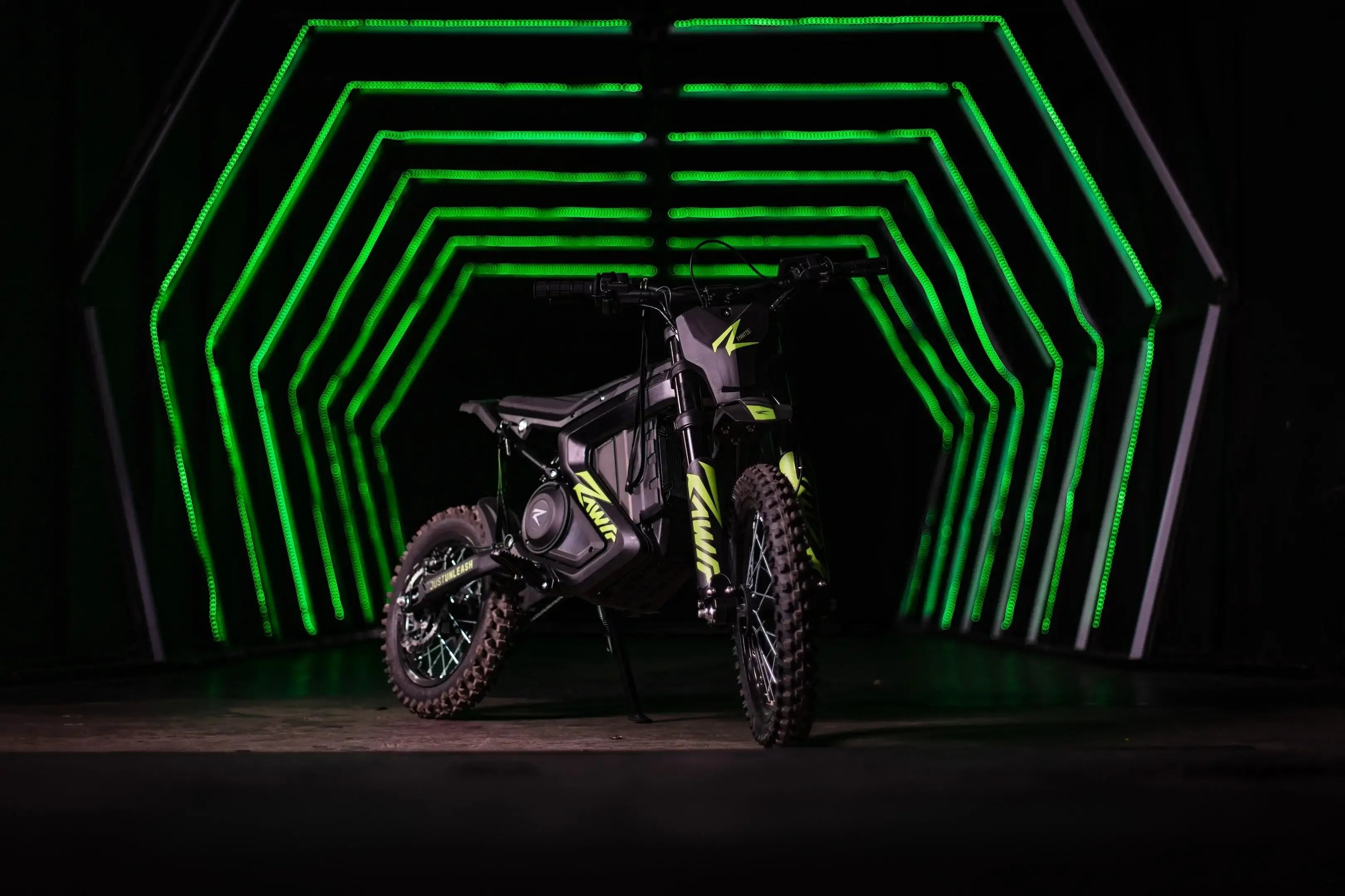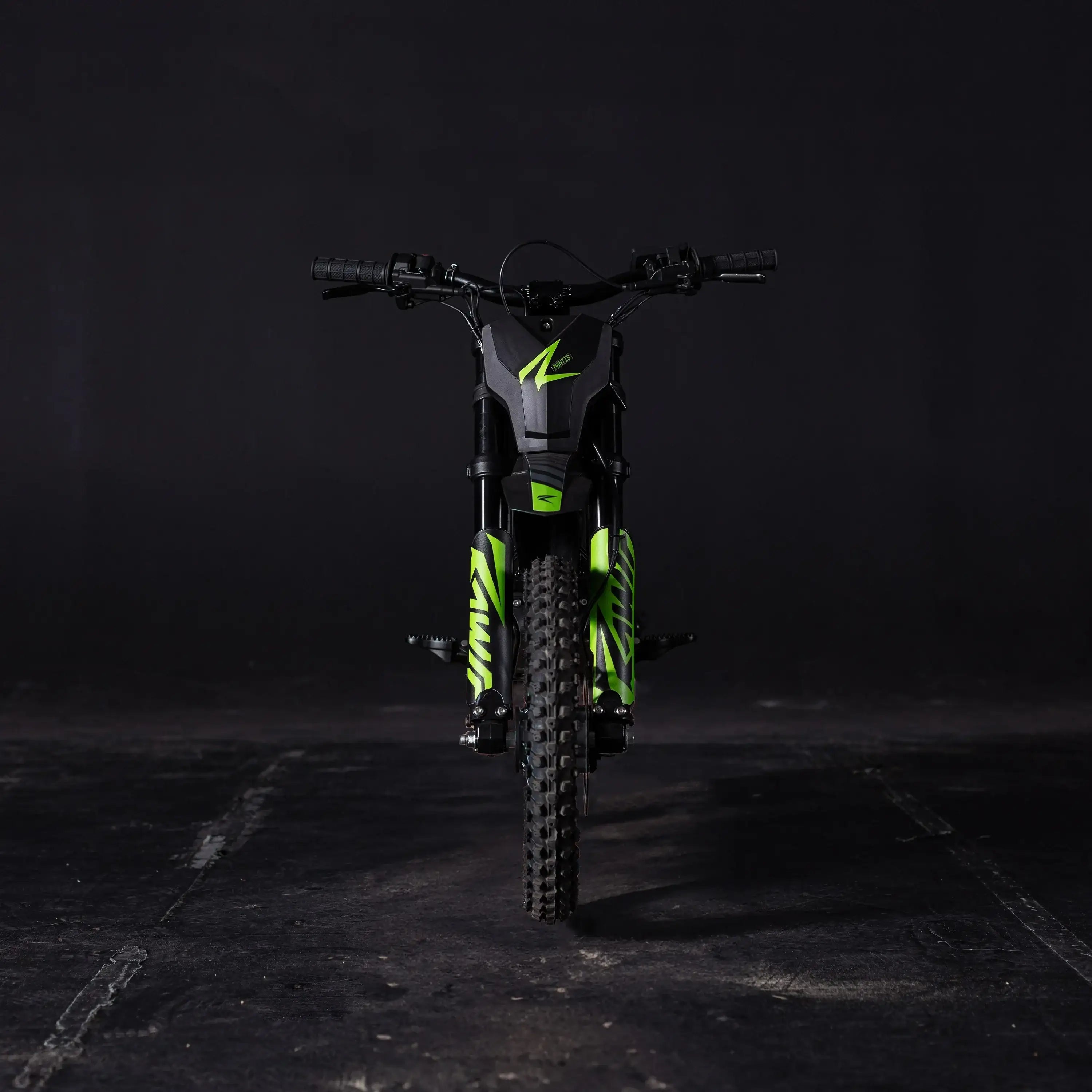 Our smallest model designed for young riders who want a more serious bike. It features a 25.7-inch seat height, 12-inch rear wheel, 14-inch front wheel, multiple power modes, and 30MPH top speed. It's an excellent eMoto at an incredible price.