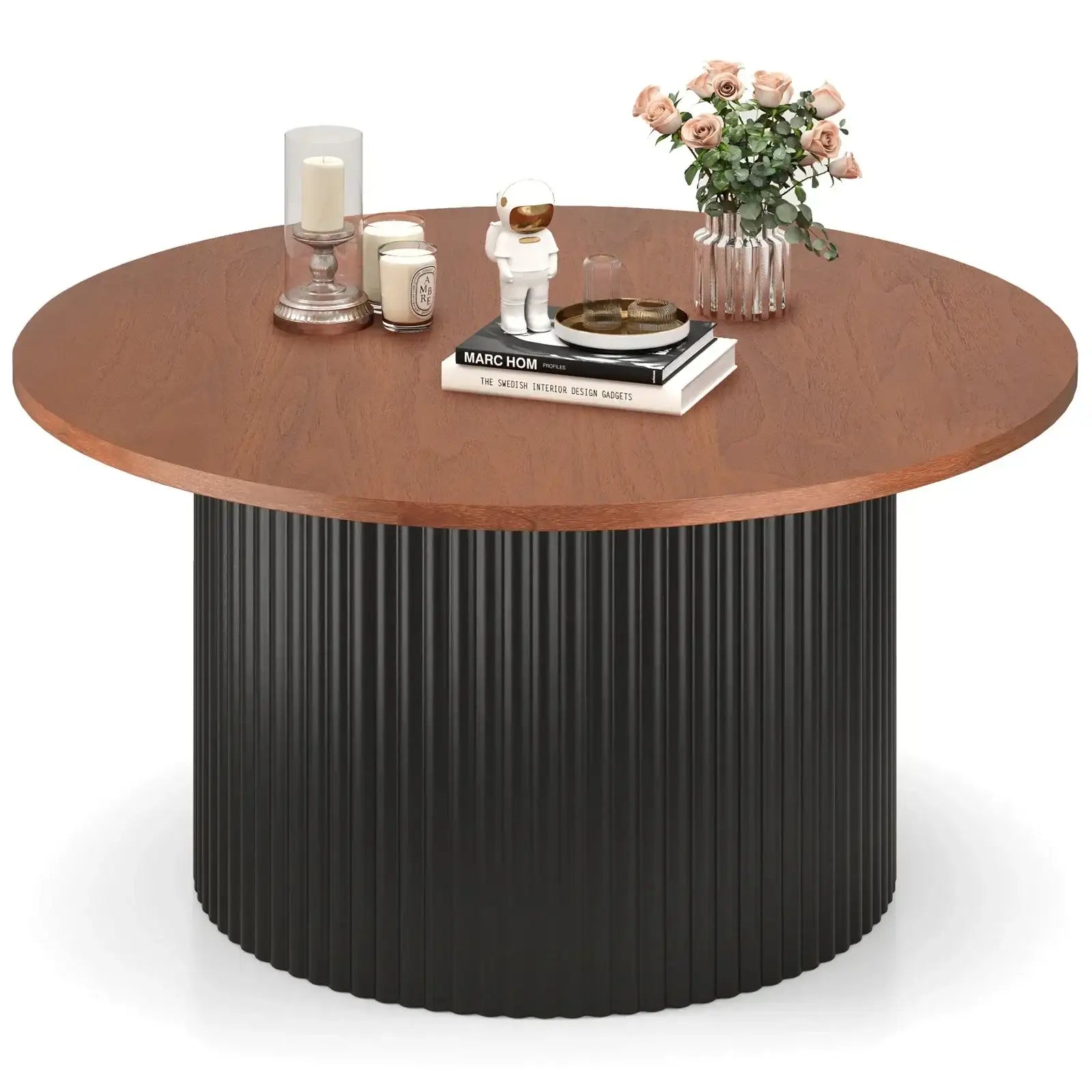Round Coffee Table with Solid Wood Frame and Wooden Top-Walnut