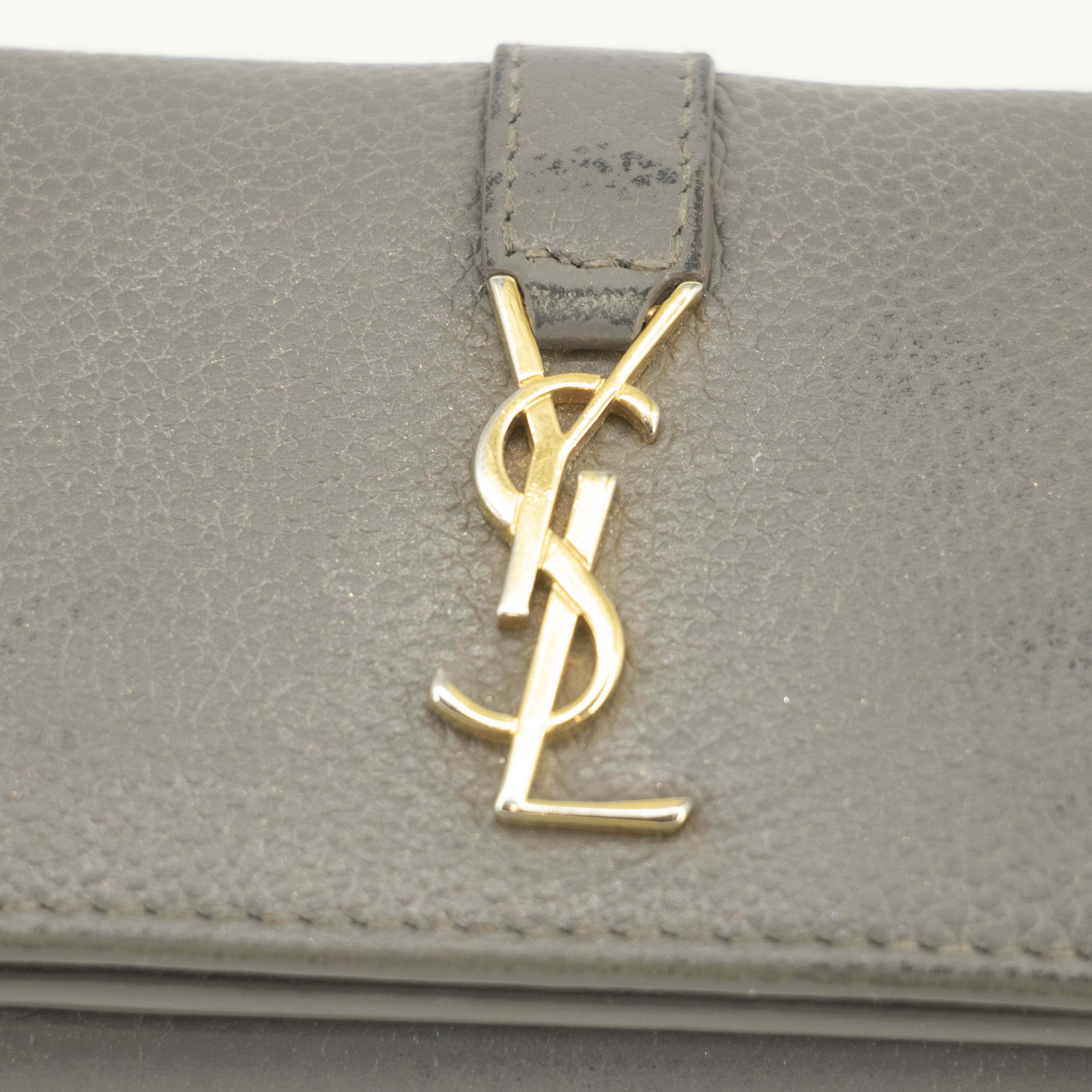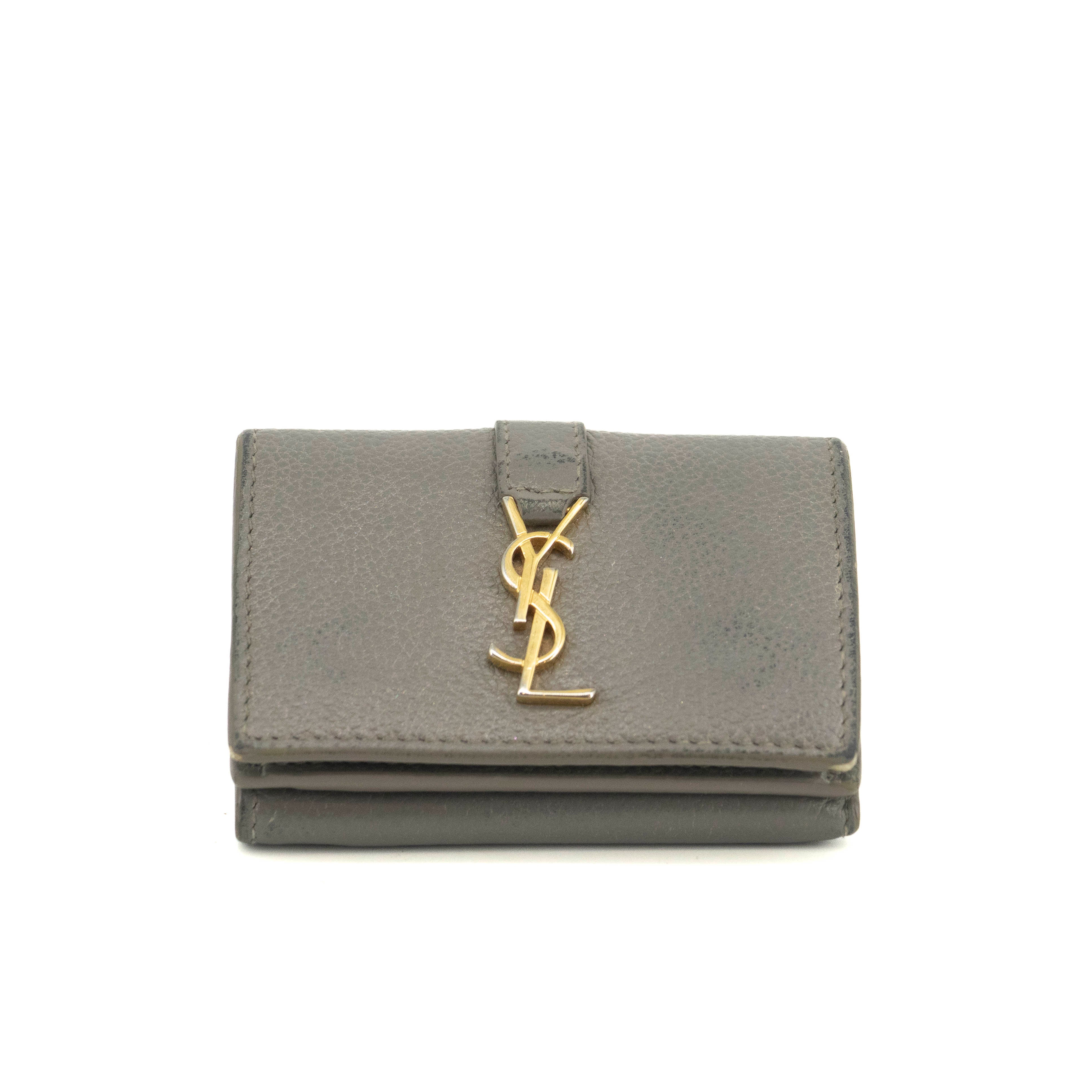 • Saint Laurent YSL Grey Leather Trifold Compact Wallet -SKU #3703