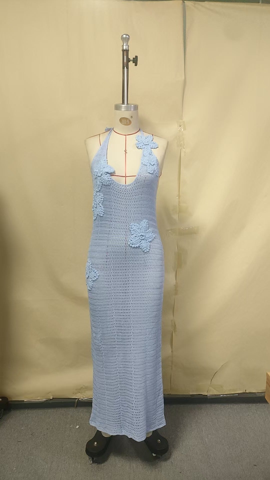Sexy Hollow Out Cutout Floating Floral Halter Backless Sleeveless Casual Vacation Beach Dress