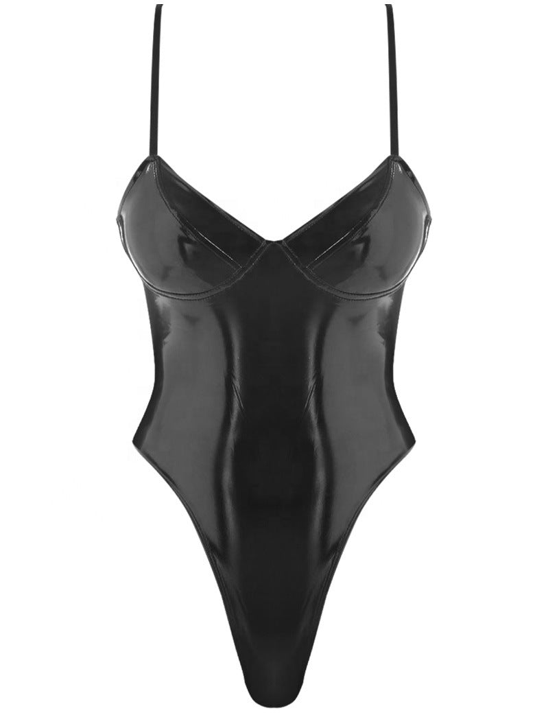 Sexy Patent Leather Backless Bodysuit Sexy Suit