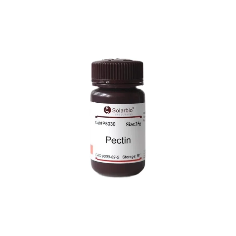 SOLARBIO Pectin is a high-quality, water-soluble pectin powder derived from citrus fruits. It is widely used in the food, pharmaceutical, and cosmetic industries for its gelling, thickening, and stabilizing properties. Pectin is a natural polysaccharide that forms gels when mixed with water, making it ideal for use in the preparation of jams, jellies, gummies, and other products that require a gel-like consistency. Additionally, SOLARBIO Pectin is used in various laboratory applications, including the production of certain drug formulations and in cell biology research.