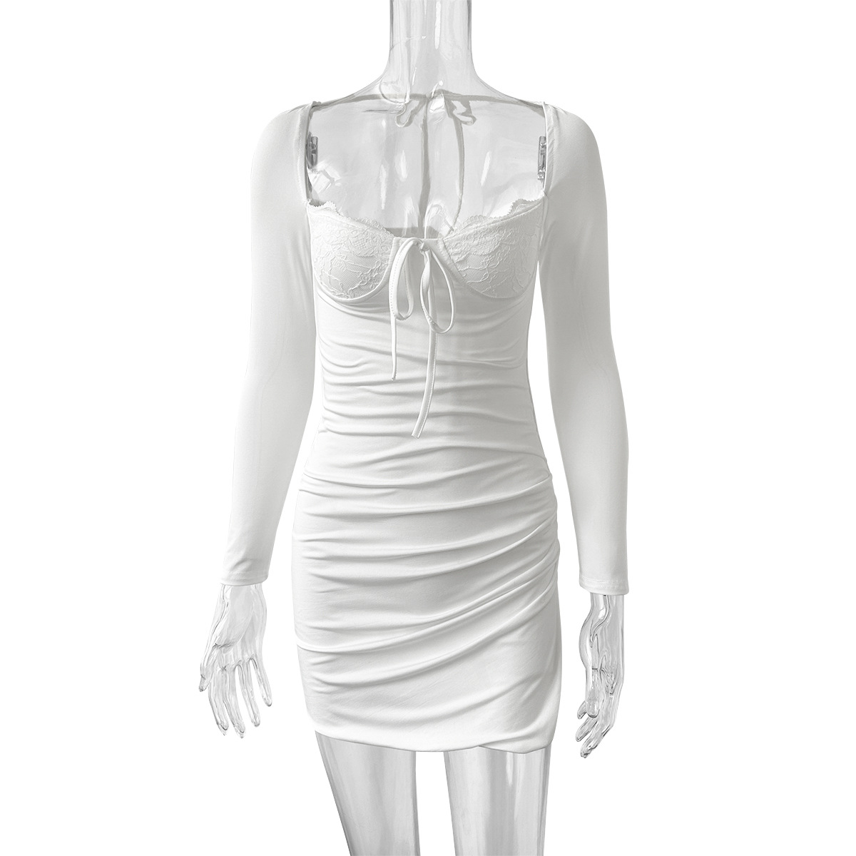 Square Collar Lace up Long Sleeve Autumn Dress Women Clothing Sexy Lace Split Dress