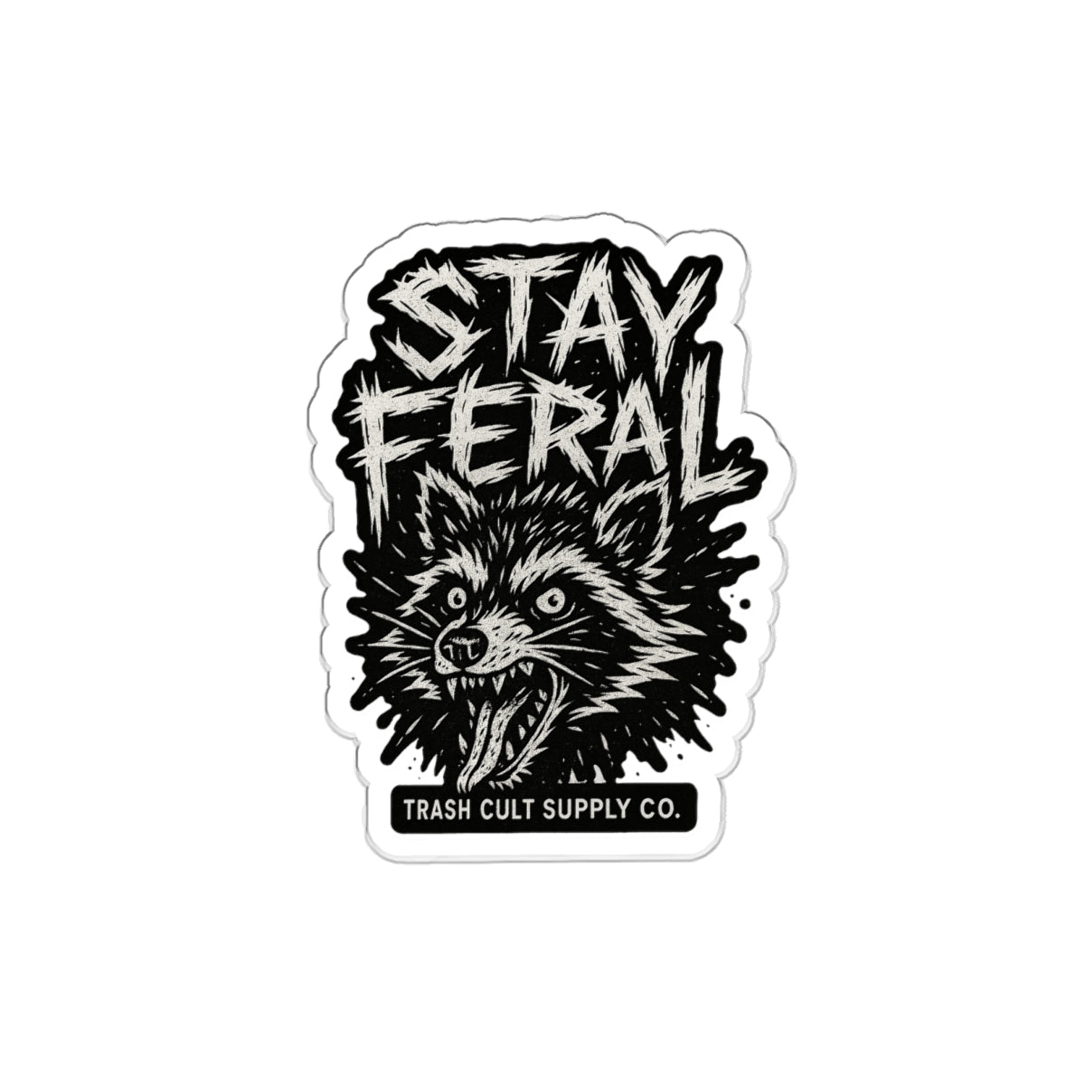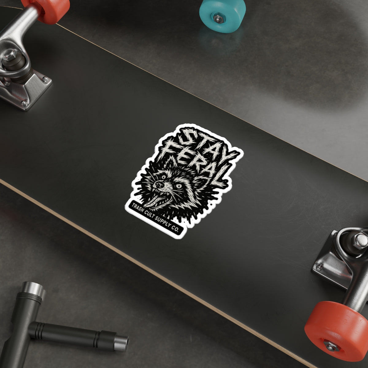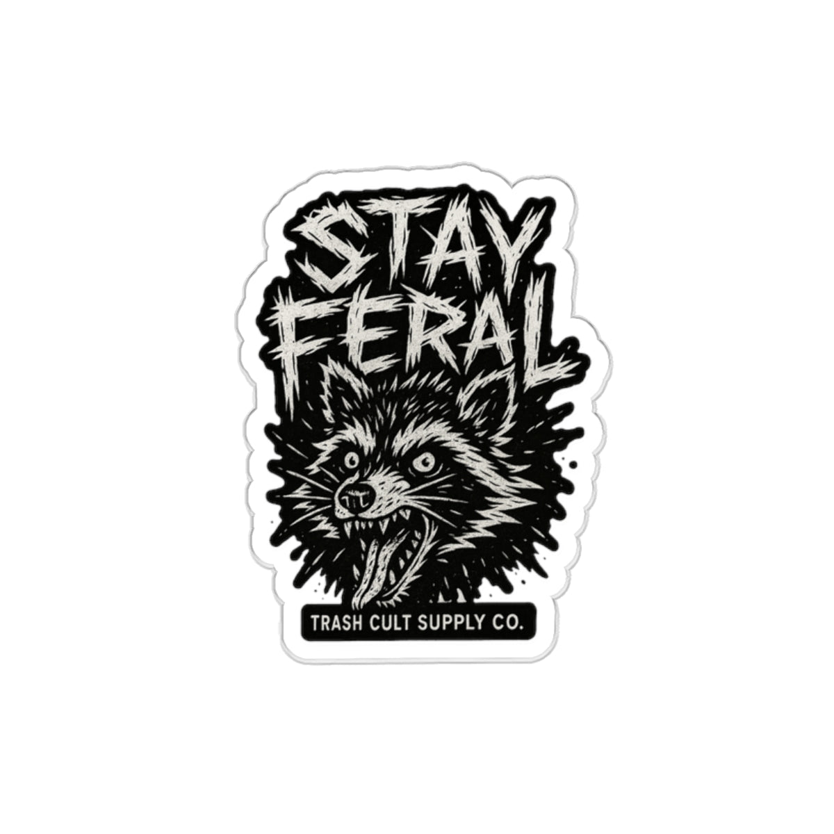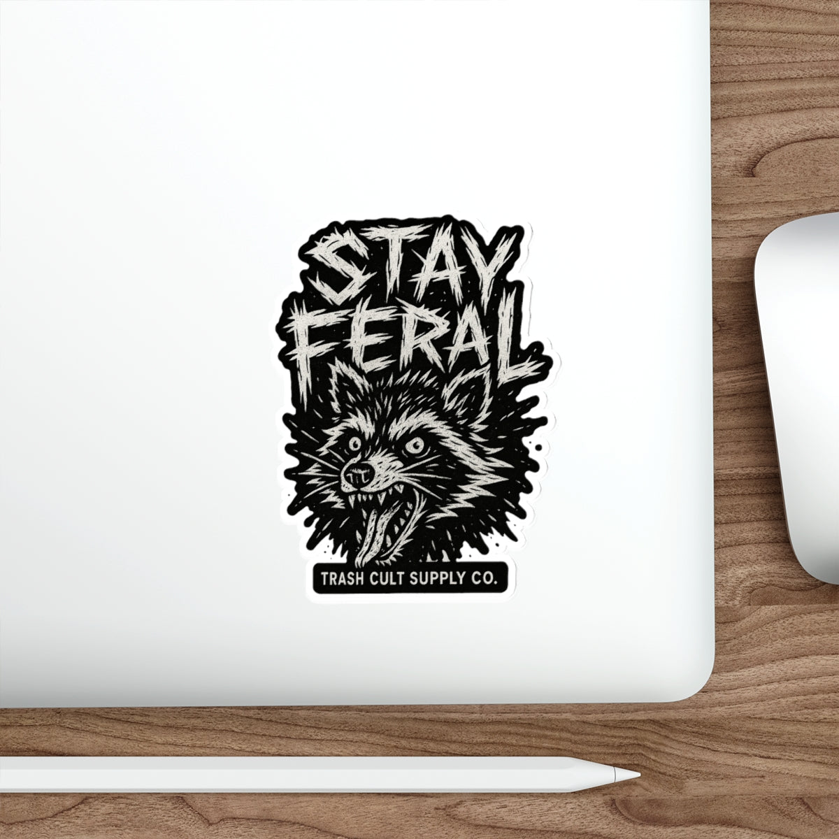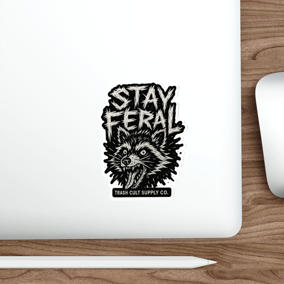 Stay Feral Die-Cut Stickers | Cool Raccoon Graphic Decals for Laptops, Water Bottles, Journals, and Skateboards