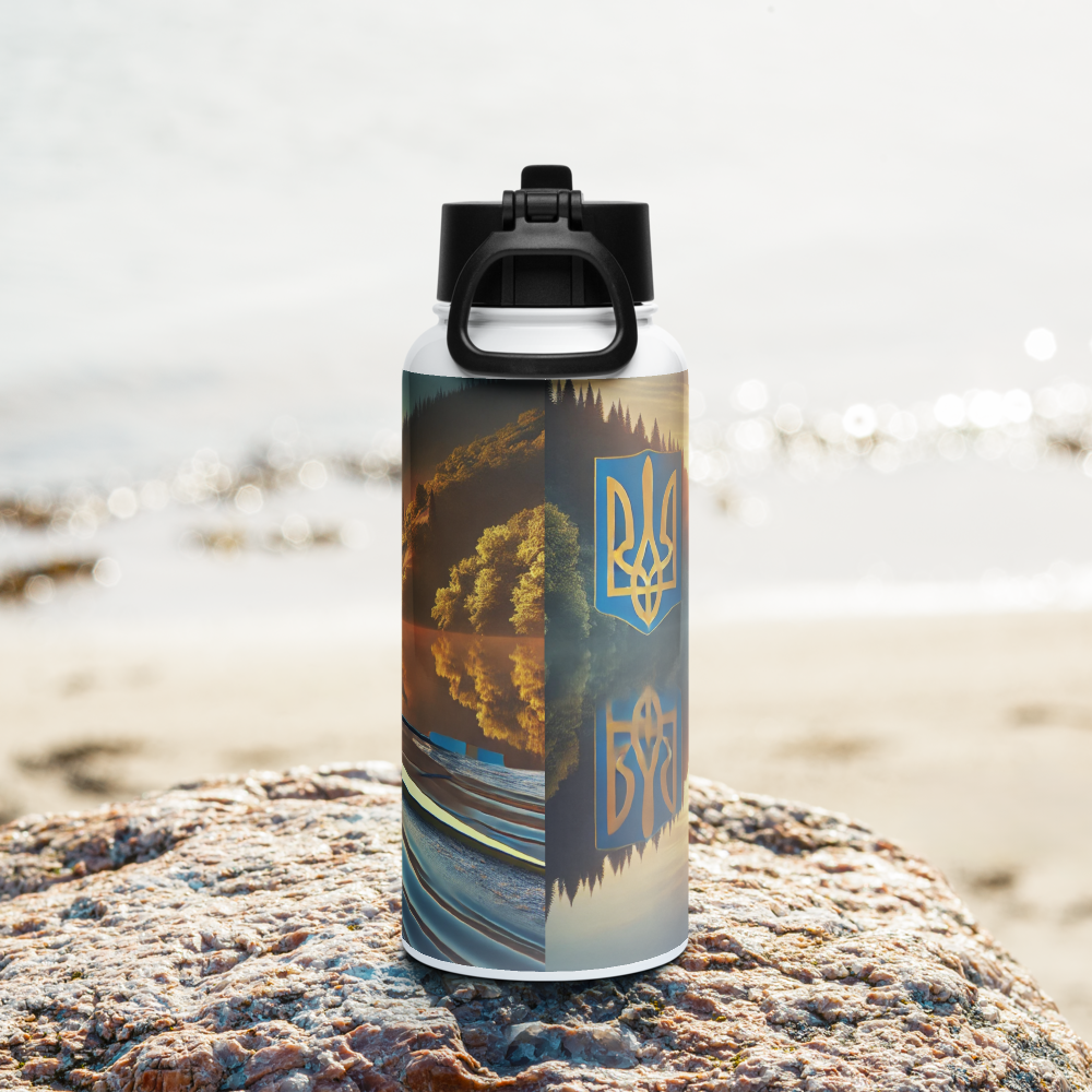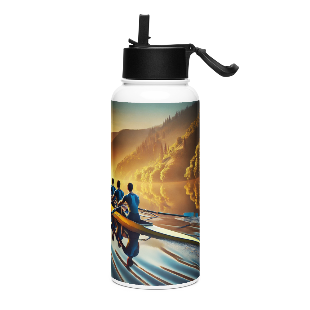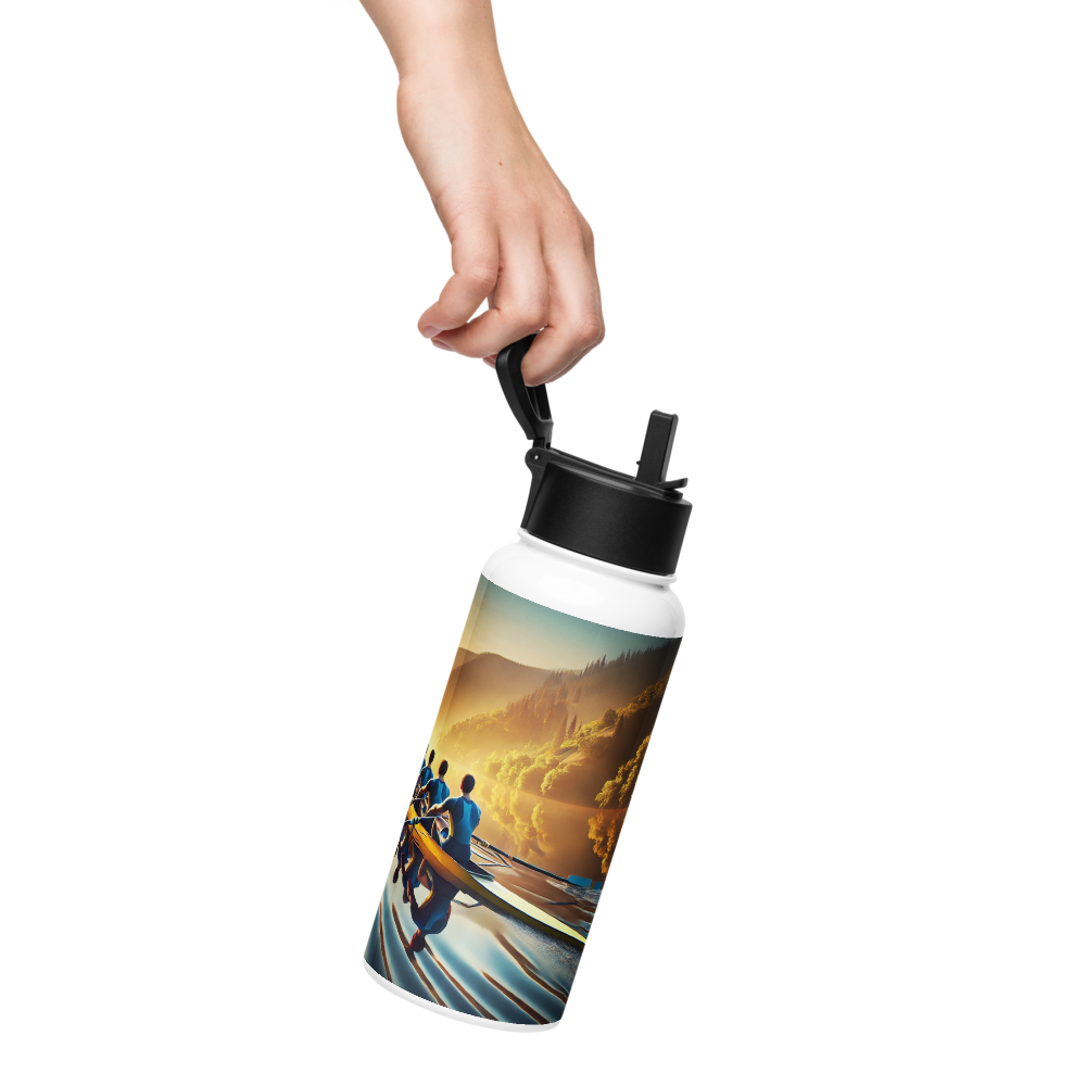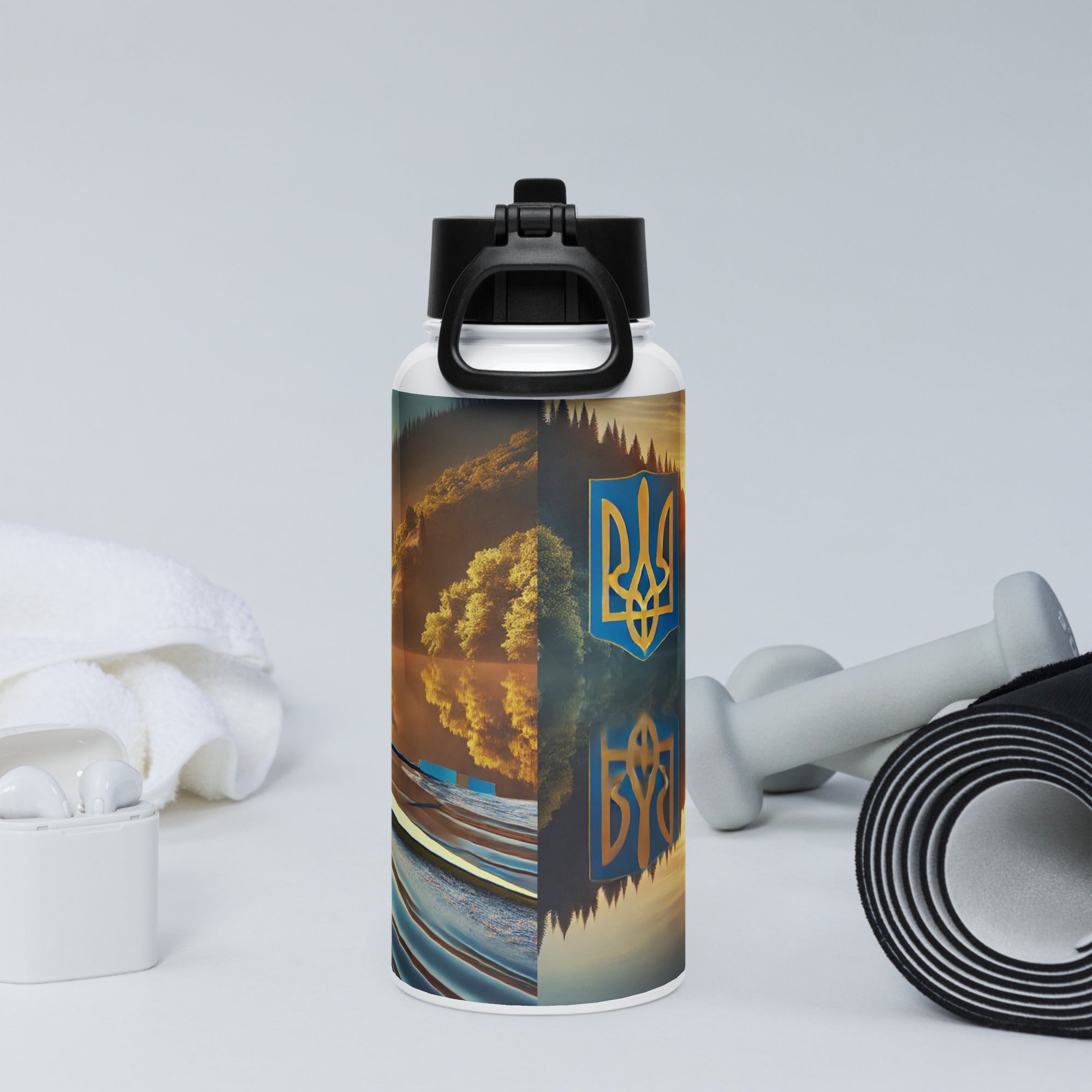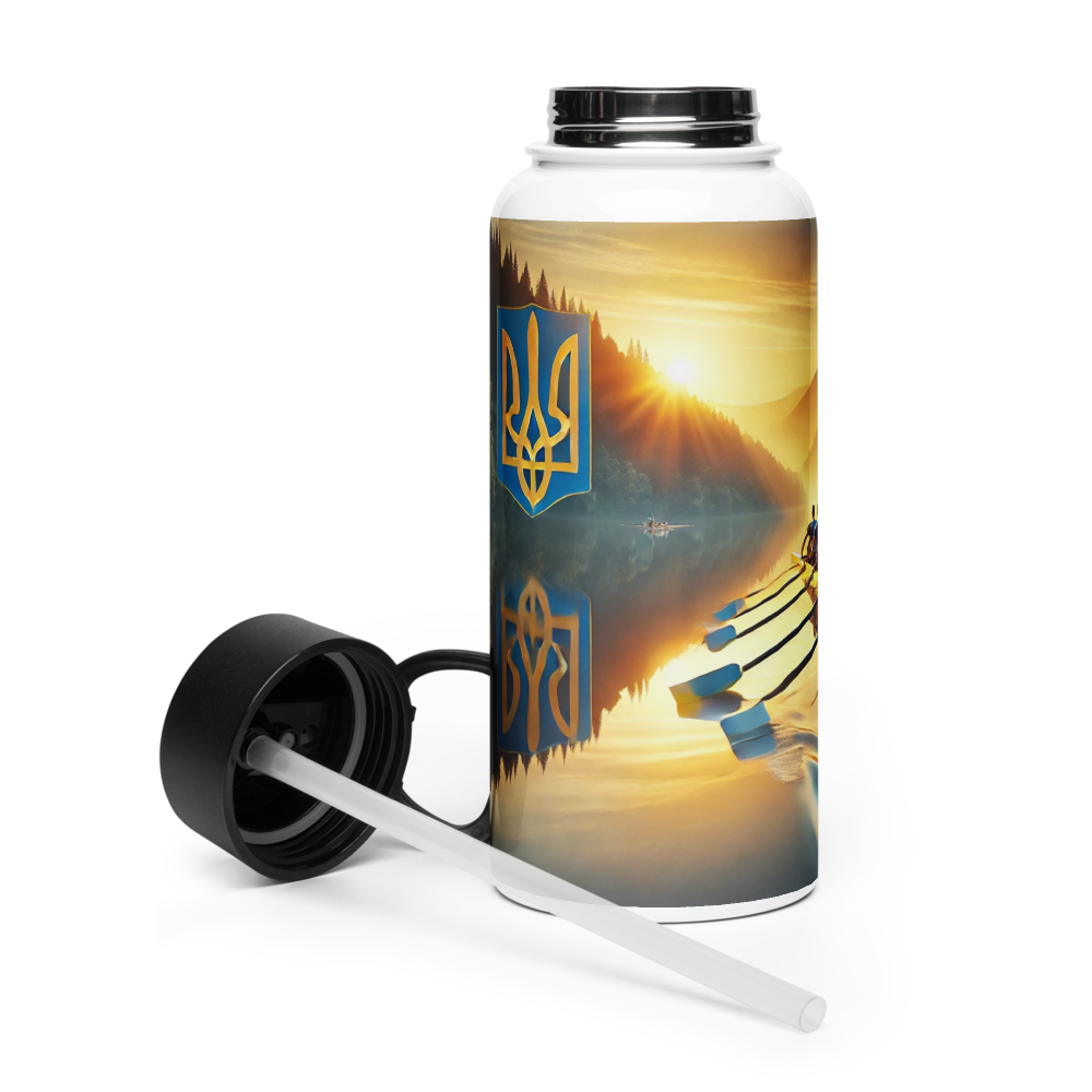 Stay refreshed during your rowing sessions with this 32 oz water bottle featuring the Ukrainian National Rowing Team emblem! Crafted from double-walled stainless steel with vacuum insulation, this bottle keeps your drink at the ideal temperature, and the wide-mouth foldable straw makes it easy to hydrate on the go. 🚣💧