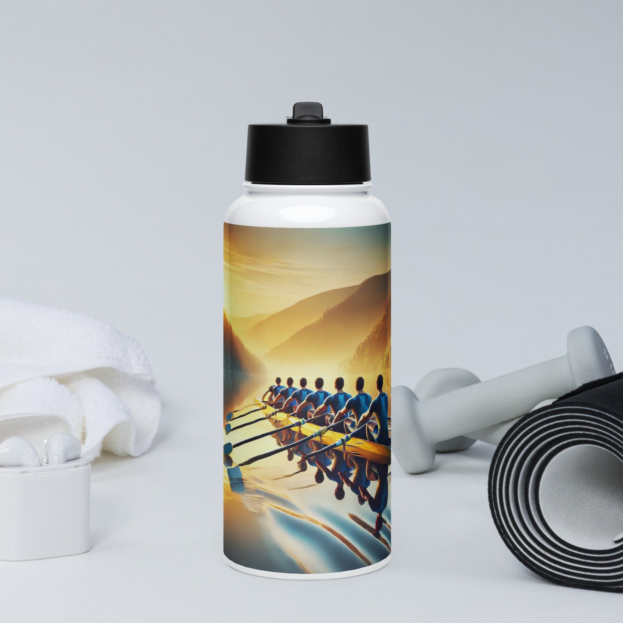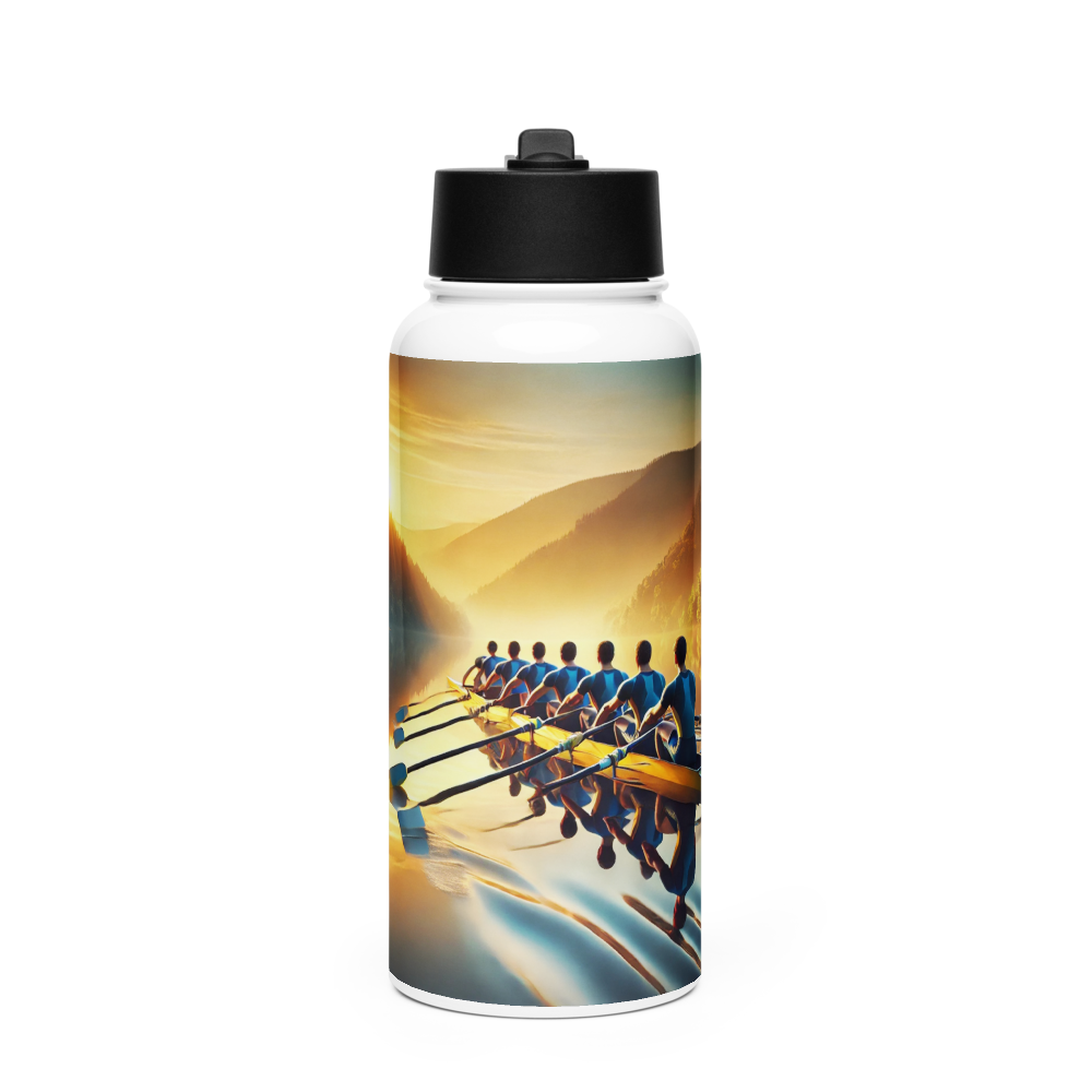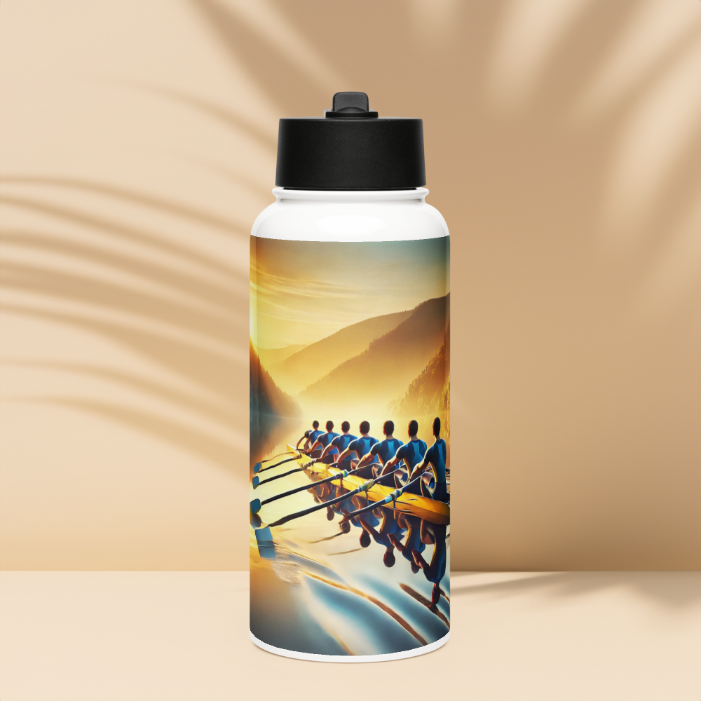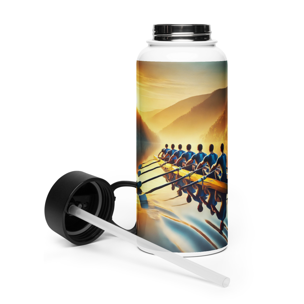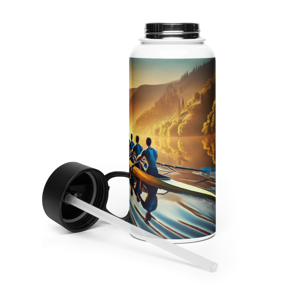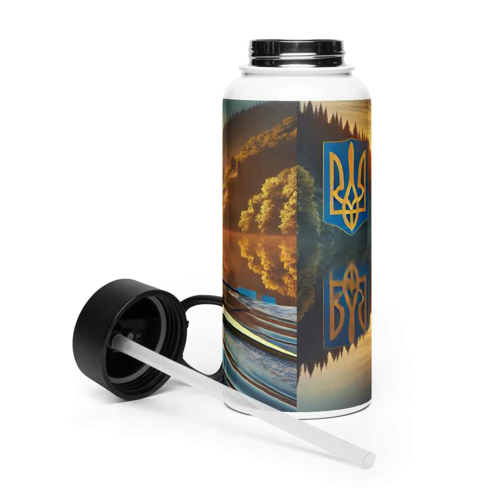 Stay refreshed during your rowing sessions with this 32 oz water bottle featuring the Ukrainian National Rowing Team emblem! Crafted from double-walled stainless steel with vacuum insulation, this bottle keeps your drink at the ideal temperature, and the wide-mouth foldable straw makes it easy to hydrate on the go. 🚣💧