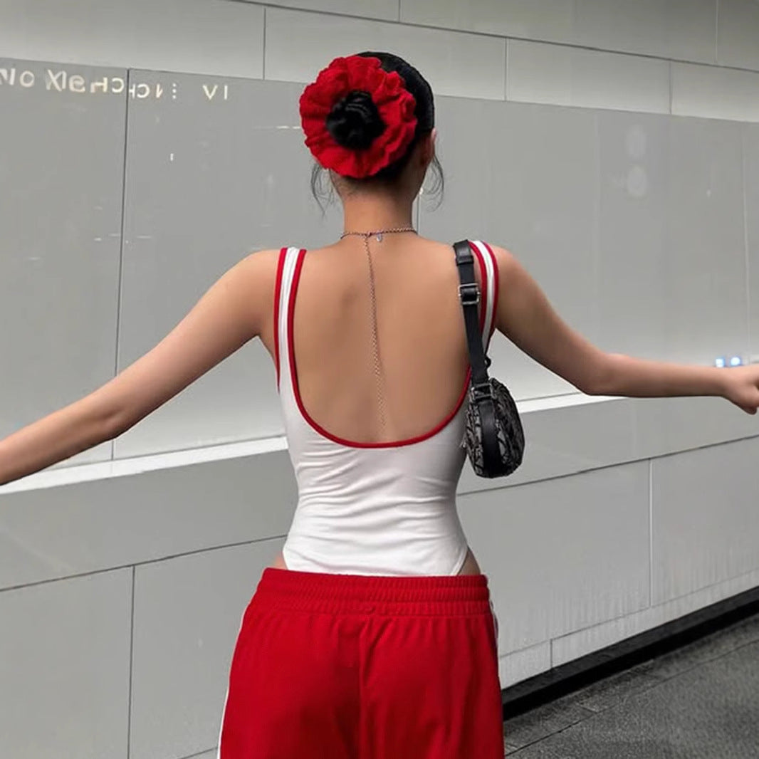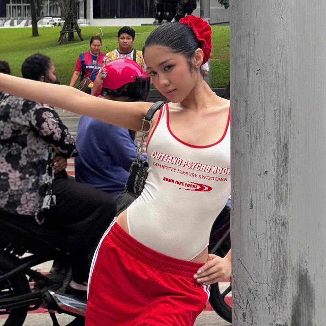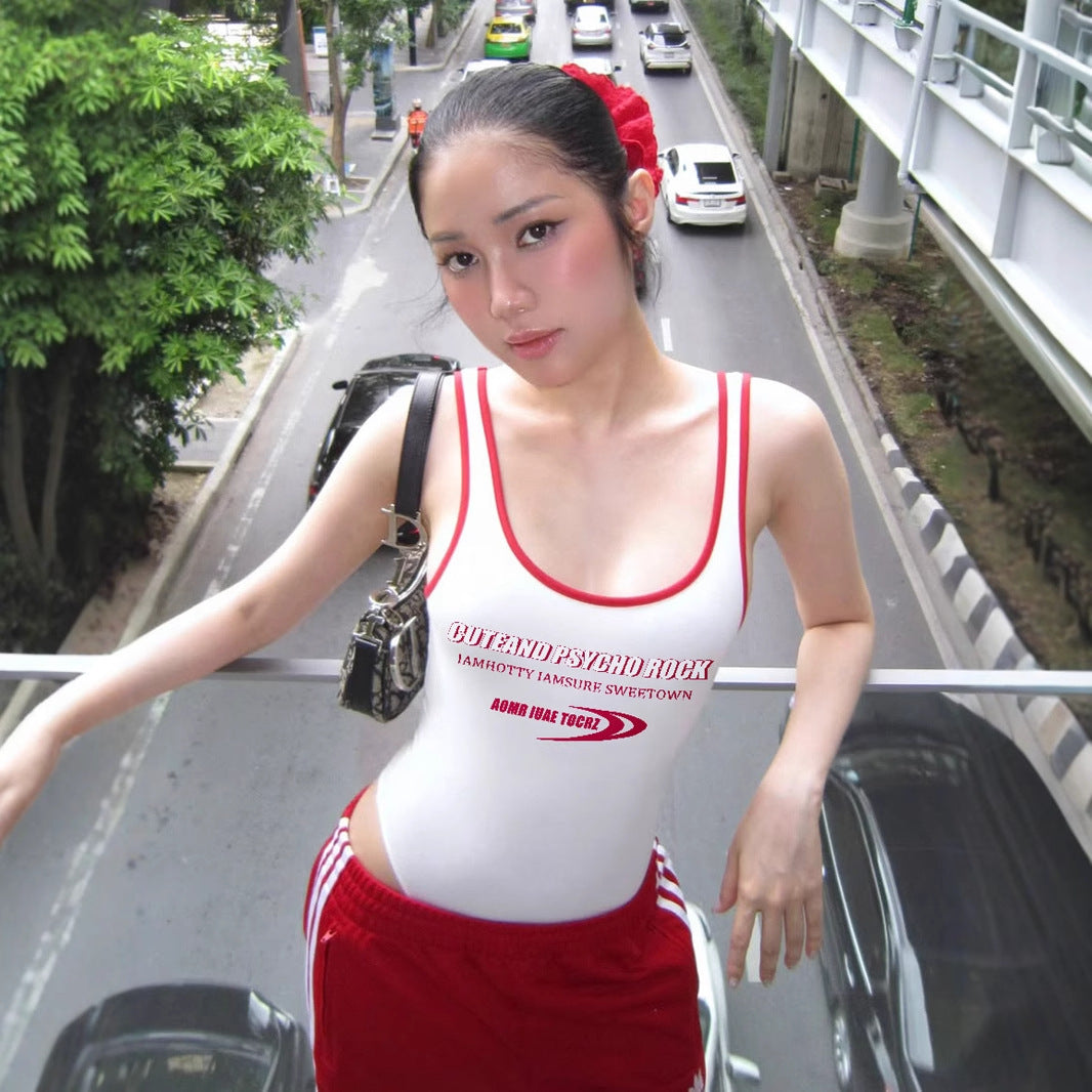 Street Letters Multicolor Printing Sling Body Shaping Corsets Sexy U Collar Backless Shaping Top