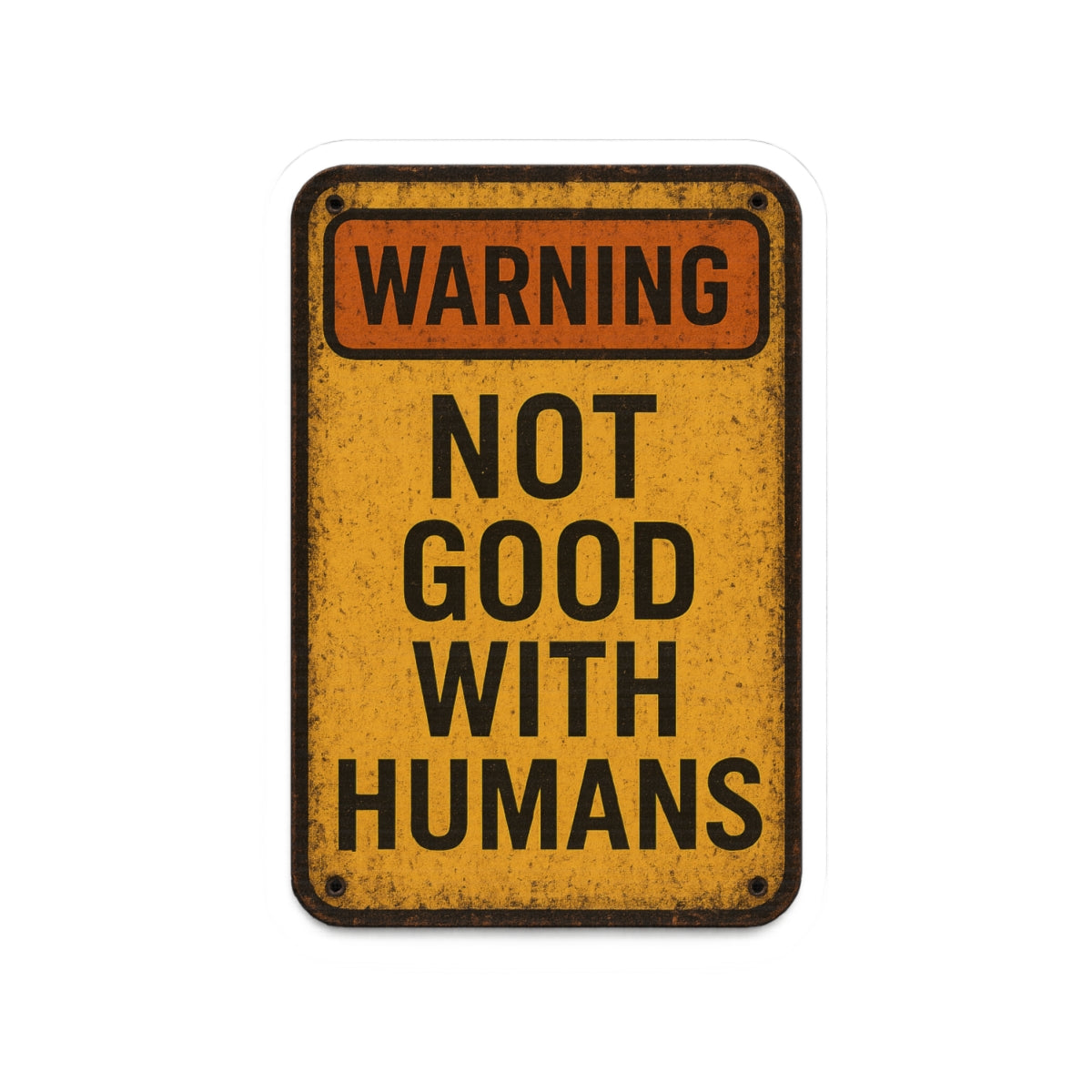 Warning Not Good With Humans Kiss-Cut Stickers | Funny Decals for Laptops, Water Bottles, Journals, Gifts, Home Decor