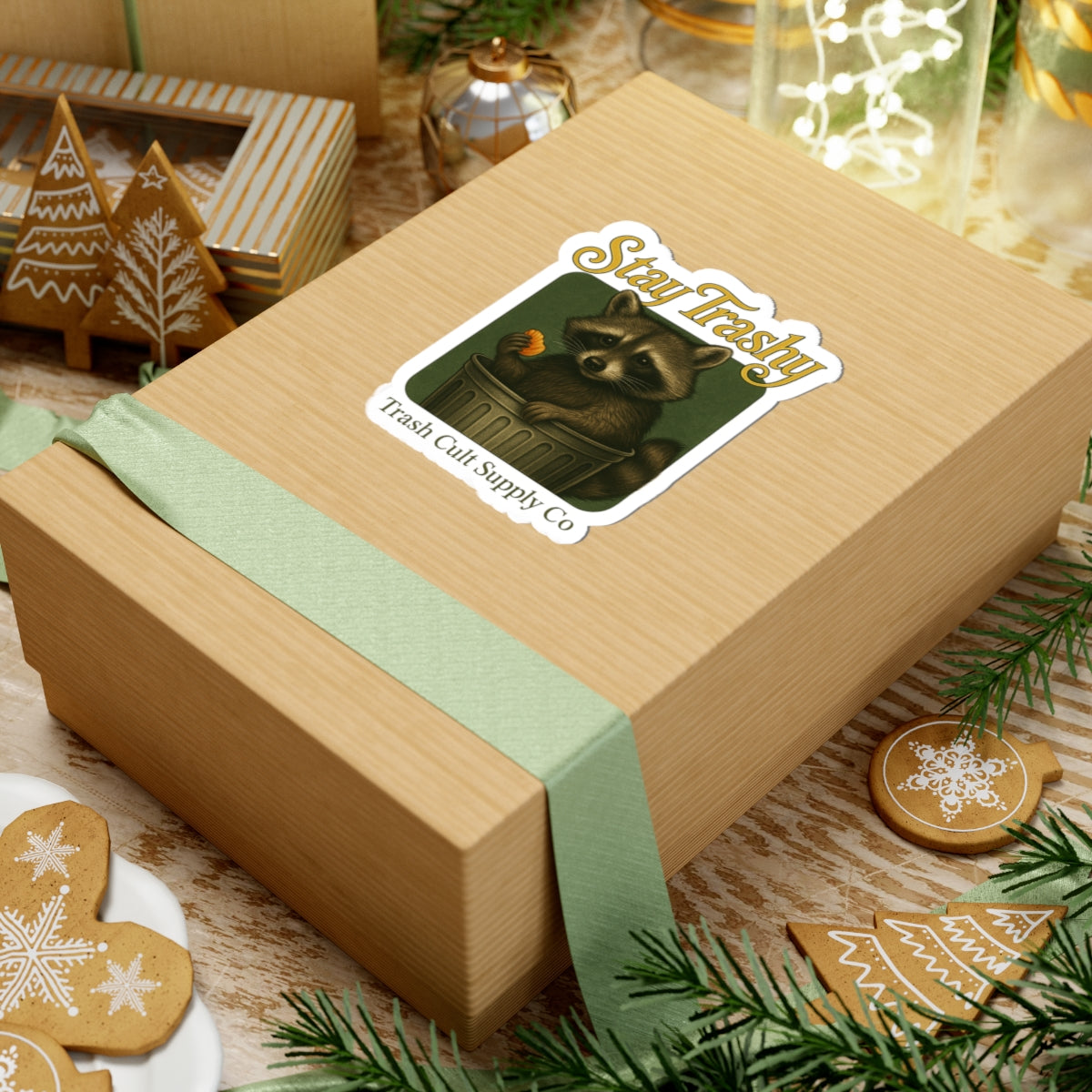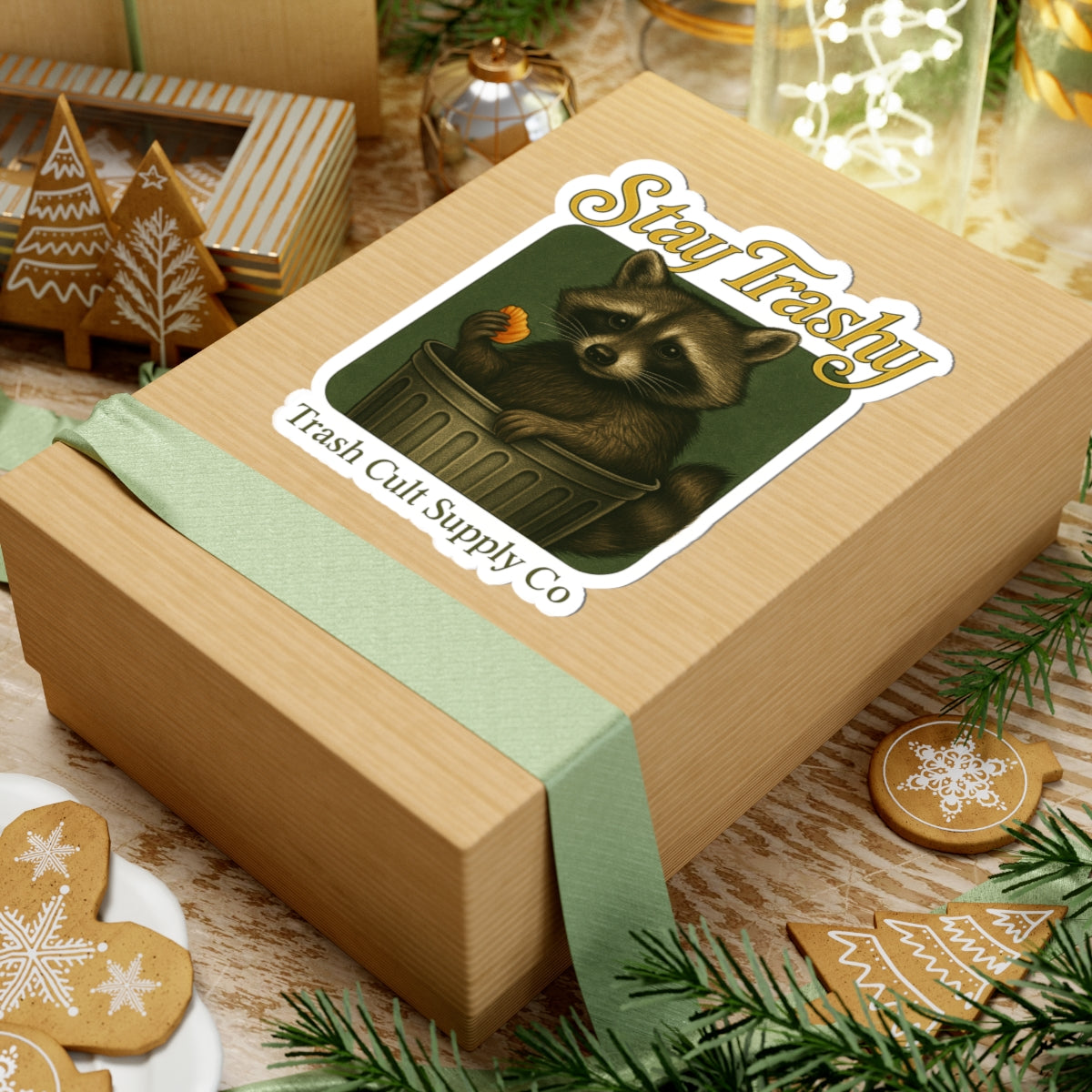 Whimsical Raccoon Kiss-Cut Stickers, Perfect for Laptops, Water Bottles, Journals, Gifts for Animal Lovers, Stay Trashy Decor