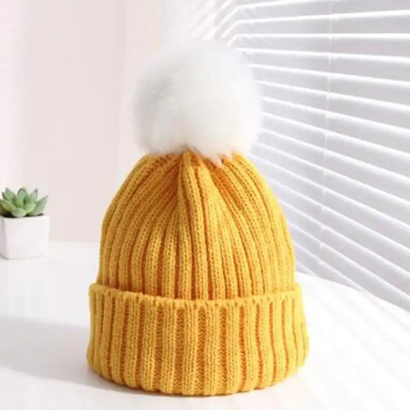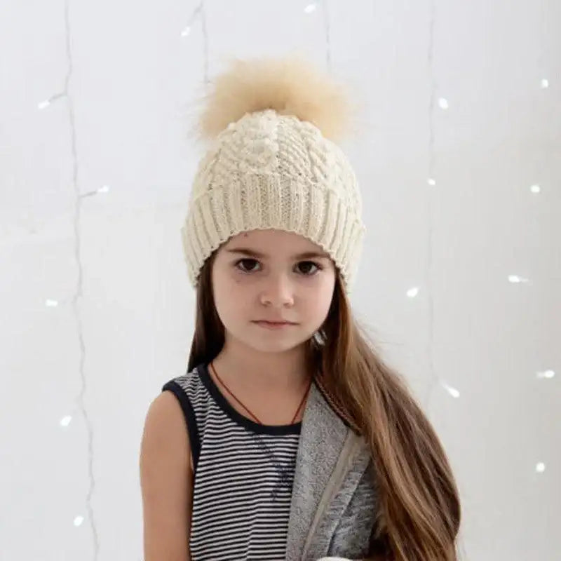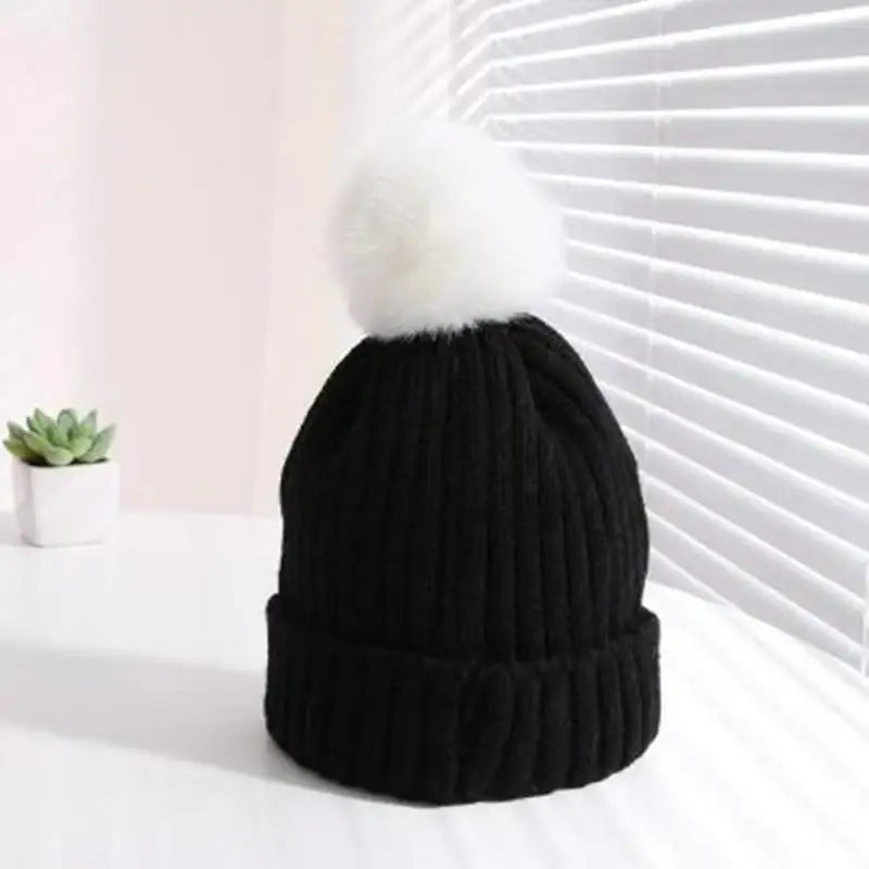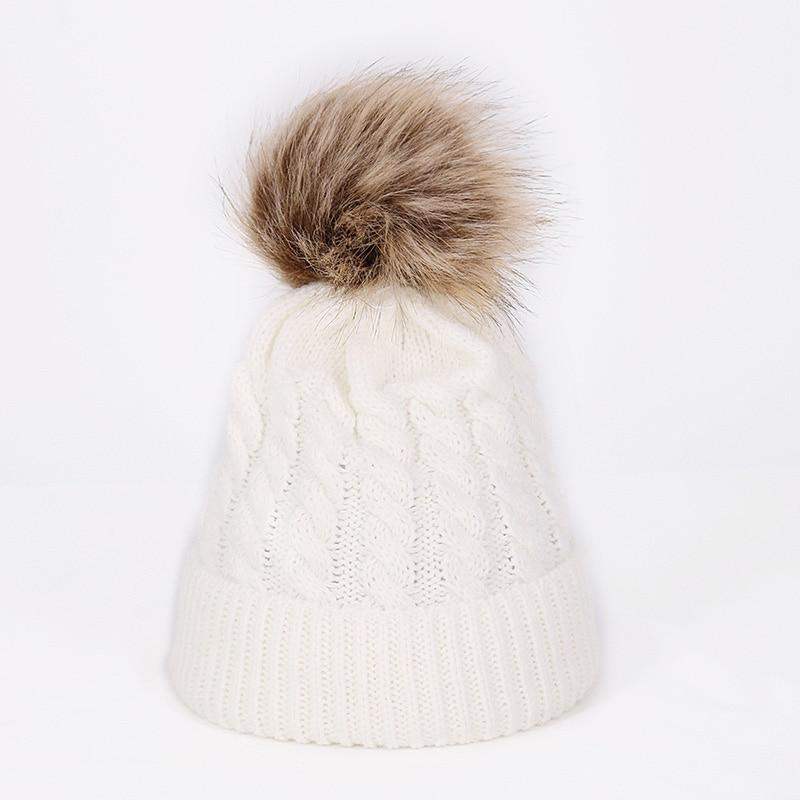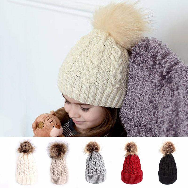 Winter Warm Baby Hat Fur Pompom Knitted Baby Hat Cap Infant Toddler Kids Hat Beanie In Modern Designer Style