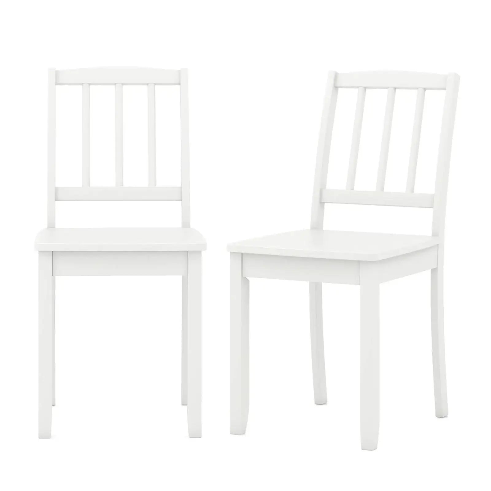 Wood Dining Chair Set of 2 with Rubber Wood Legs-White
